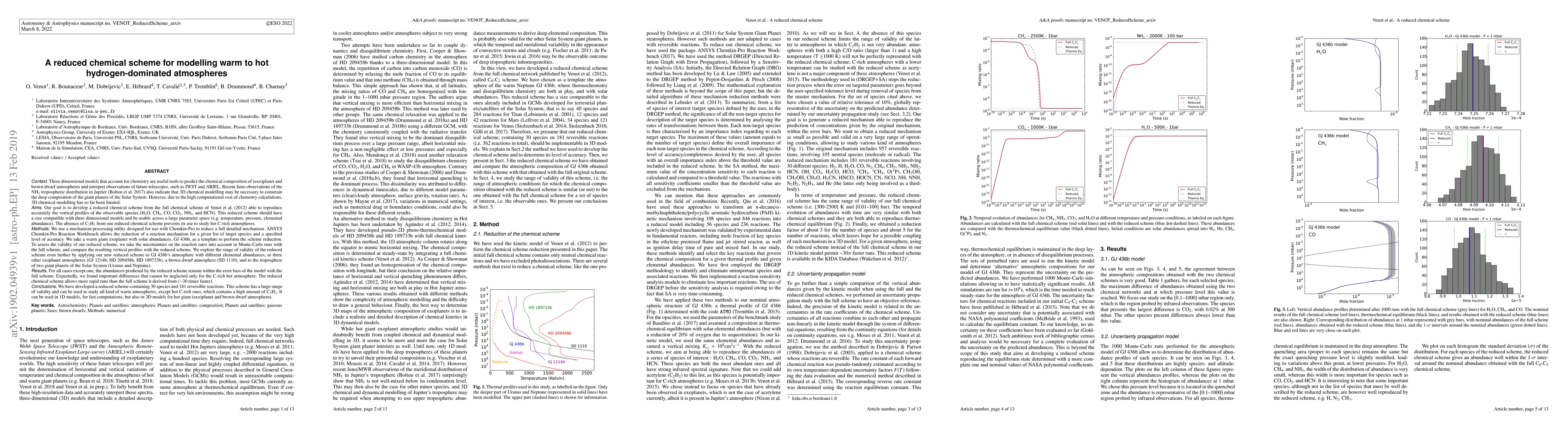 This paper presents a reduced chemical scheme with 30 species and 181 reactions to efficiently model warm to hot hydrogen-dominated atmospheres in 3D models, accurately reproducing vertical profiles of key species and enabling faster computations for studying exoplanet and brown dwarf atmospheres. The scheme is versatile but excludes hot, carbon-rich atmospheres.