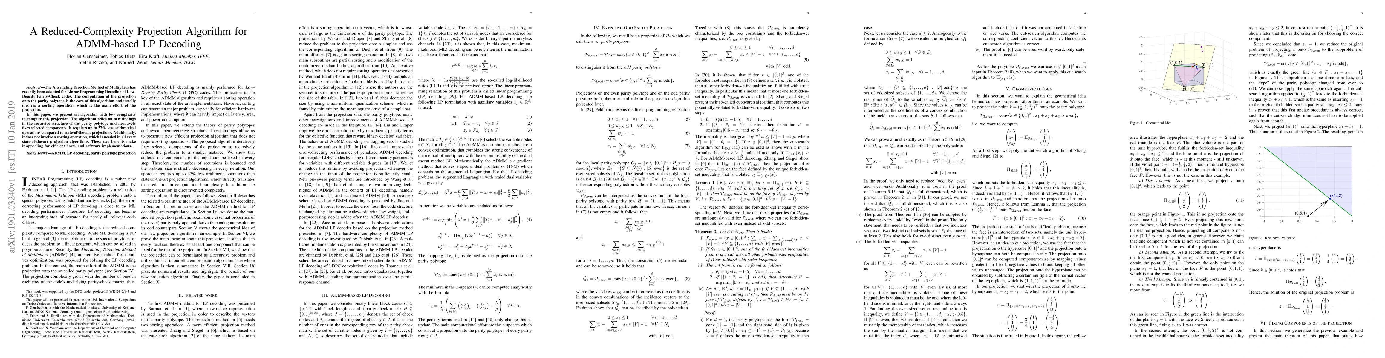 The Alternating Direction Method of Multipliers has recently been adapted for Linear Programming Decoding of Low-Density Parity-Check codes. The computation of the projection onto the parity polytope is the core of this algorithm and usually involves a sorting operation, which is the main effort of the projection. In this paper, we present an algorithm with low complexity to compute this projection. The algorithm relies on new findings in the recursive structure of the parity polytope and iteratively fixes selected components. It requires up to 37% less arithmetical operations compared to state-of-the-art projections. Additionally, it does not involve a sorting operation, which is needed in all exact state-of-the-art projection algorithms. These two benefits make it appealing for efficient hard- and software implementations.