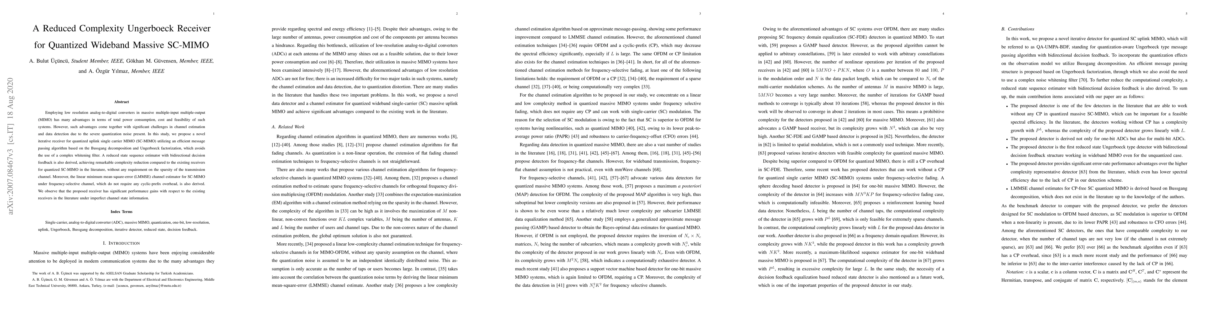 This paper proposes a novel reduced complexity iterative receiver for quantized uplink single carrier MIMO, utilizing an efficient message passing algorithm and a reduced state sequence estimator with bidirectional decision feedback, achieving significant complexity reduction and performance gains under imperfect channel state information.