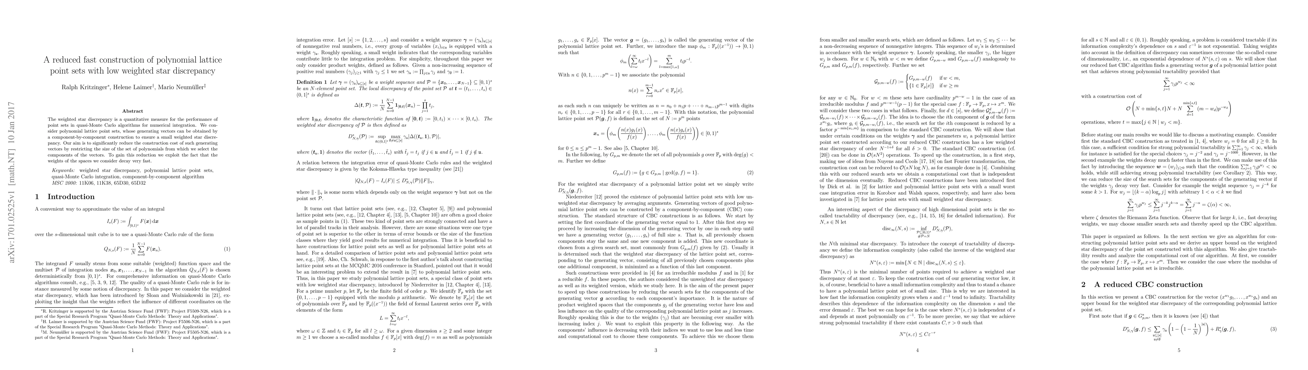 This paper proposes a method to construct polynomial lattice point sets with low weighted star discrepancy at reduced computational cost. By limiting the size of the polynomial set used in the construction and leveraging the rapid decay of weights, the authors achieve a significant reduction in the generation process.