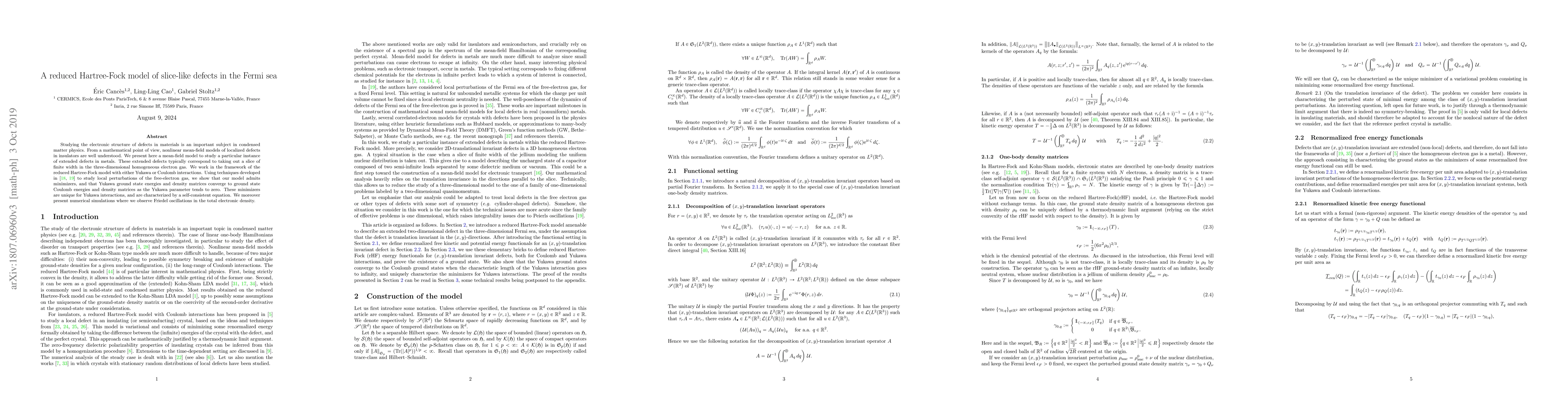 Researchers developed a new model to study extended defects in metals, finding that as the interaction strength approaches zero, the model's ground state energies and density matrices converge to those of a homogeneous electron gas, exhibiting Friedel oscillations in the total electronic density.