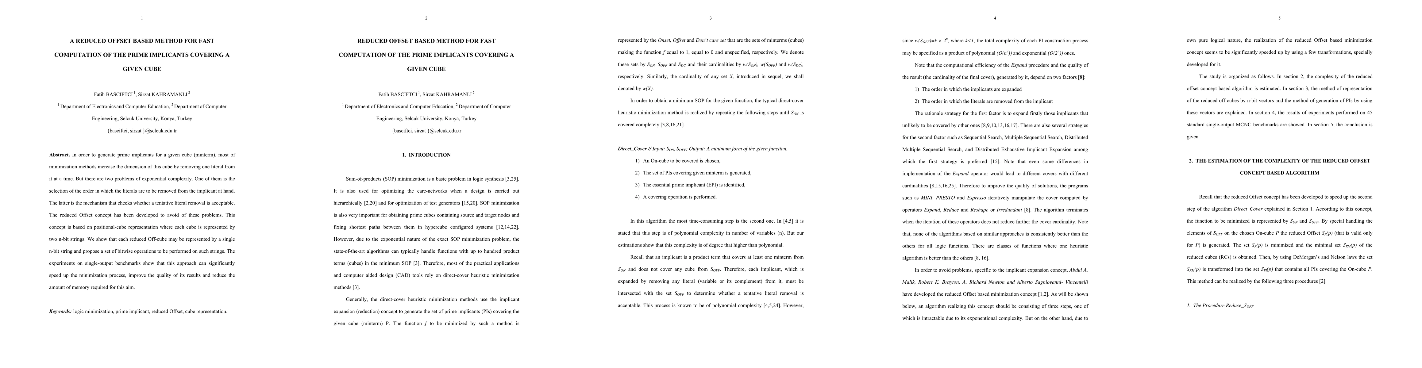 In order to generate prime implicants for a given cube (minterm), most of minimization methods increase the dimension of this cube by removing one literal from it at a time. But there are two problems of exponential complexity. One of them is the selection of the order in which the literals are to be removed from the implicant at hand. The latter is the mechanism that checks whether a tentative literal removal is acceptable. The reduced Offset concept has been developed to avoid of these problems. This concept is based on positional-cube representation where each cube is represented by two n-bit strings. We show that each reduced Off-cube may be represented by a single n-bit string and propose a set of bitwise operations to be performed on such strings. The experiments on single-output benchmarks show that this approach can significantly speed up the minimization process, improve the quality of its results and reduce the amount of memory required for this aim.