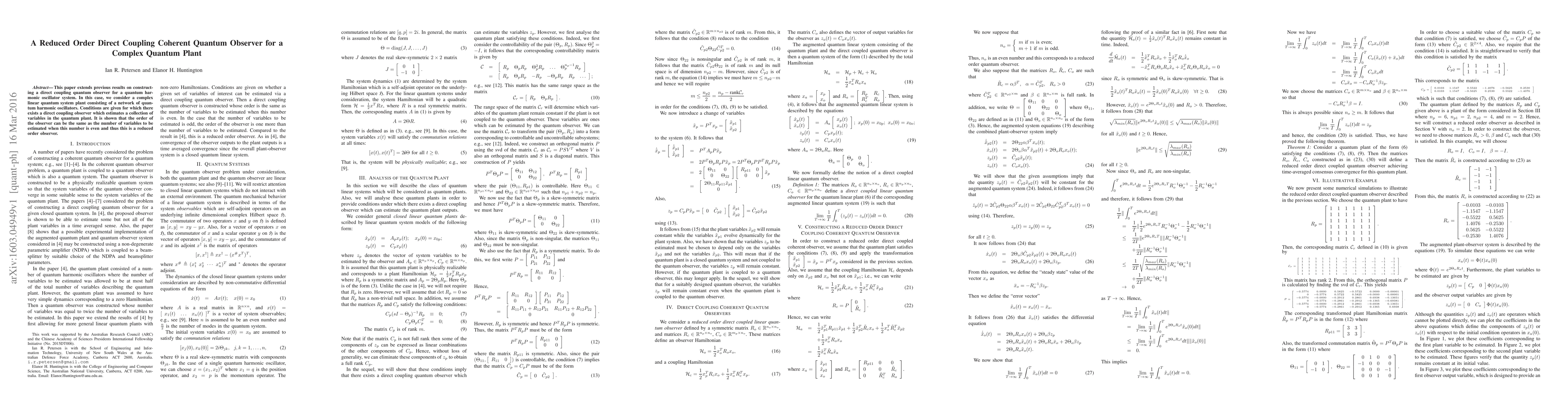 This paper extends previous results on constructing a direct coupling quantum observer for a quantum harmonic oscillator system. In this case, we consider a complex linear quantum system plant consisting of a network of quantum harmonic oscillators. Conditions are given for which there exists a direct coupling observer which estimates a collection of variables in the quantum plant. It is shown that the order of the observer can be the same as the number of variables to be estimated when this number is even and thus this is a reduced order observer.