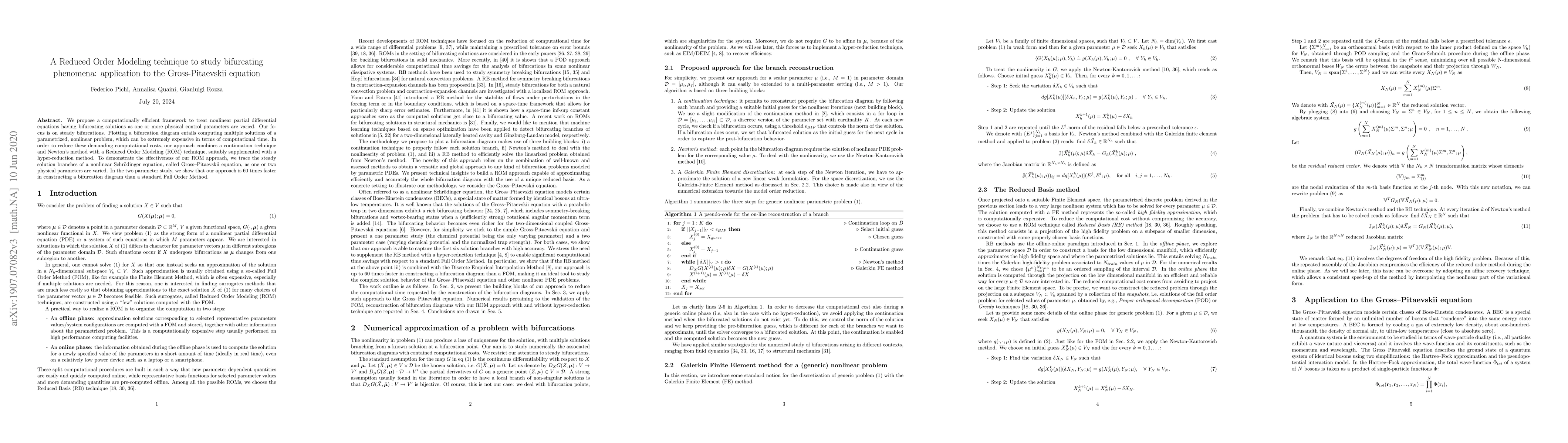 We propose a computationally efficient framework to treat nonlinear partial differential equations having bifurcating solutions as one or more physical control parameters are varied. Our focus is on steady bifurcations. Plotting a bifurcation diagram entails computing multiple solutions of a parametrized, nonlinear problem, which can be extremely expensive in terms of computational time. In order to reduce these demanding computational costs, our approach combines a continuation technique and Newton's method with a Reduced Order Modeling (ROM) technique, suitably supplemented with a hyper-reduction method. To demonstrate the effectiveness of our ROM approach, we trace the steady solution branches of a nonlinear Schr\"{o}dinger equation, called Gross-Pitaevskii equation, as one or two physical parameters are varied. In the two parameter study, we show that our approach is 60 times faster in constructing a bifurcation diagram than a standard Full Order Method.