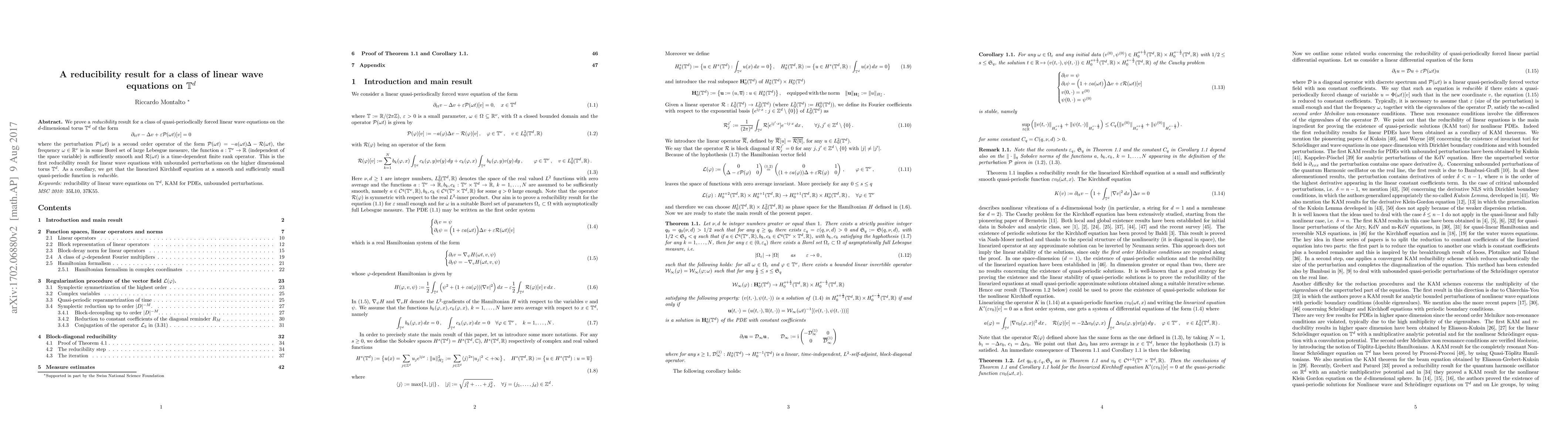 Researchers prove a reducibility result for linear wave equations with quasi-periodic forcing on the torus, showing that these equations can be reduced to 1D problems, which has implications for understanding the behavior of such systems.