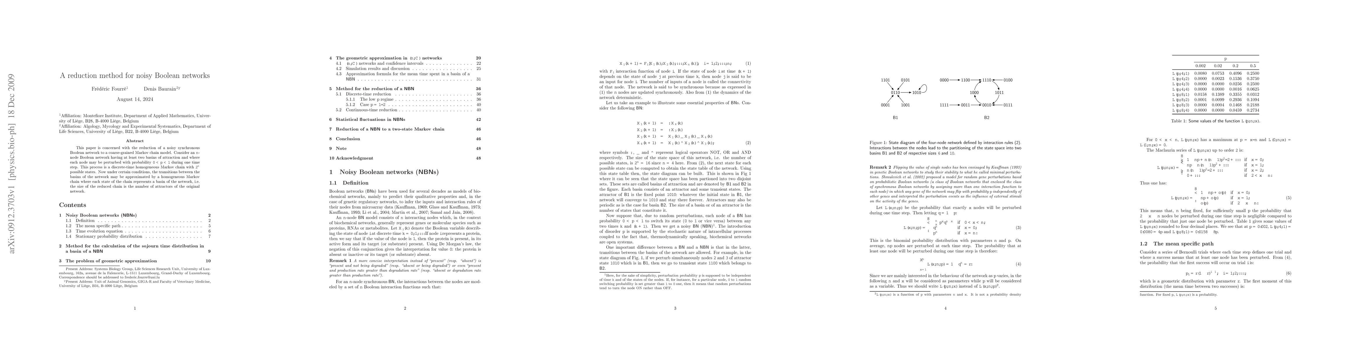 This paper proposes a method to reduce a noisy Boolean network into a Markov chain, where the number of states corresponds to the attractors of the original network, simplifying the analysis of the network's dynamics.