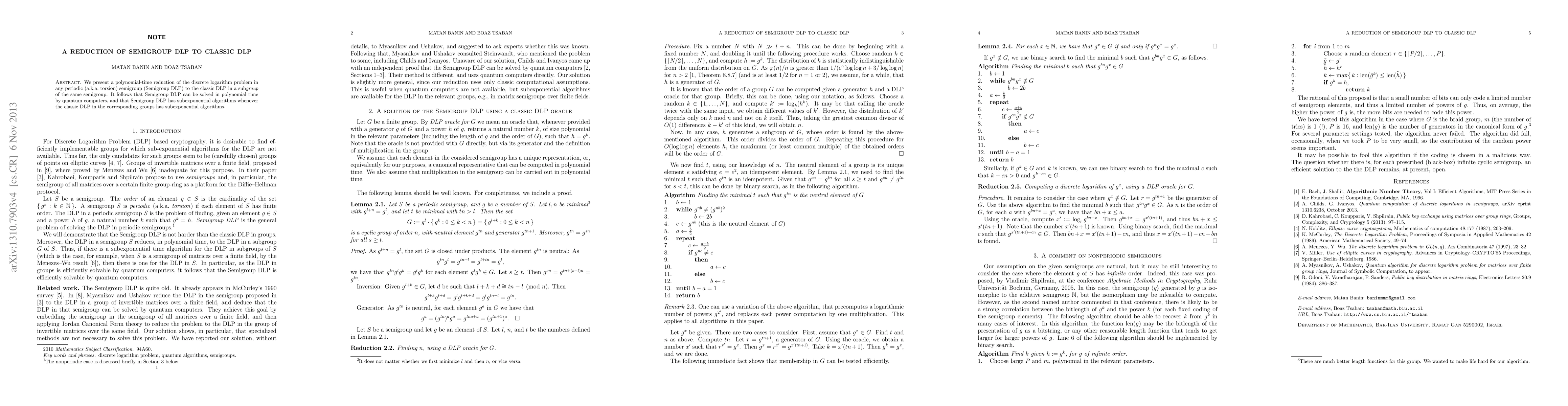 We present a polynomial-time reduction of the discrete logarithm problem in any periodic (a.k.a. torsion) semigroup (SGDLP) to the same problem in a subgroup of the same semigroup. It follows that SGDLP can be solved in polynomial time by quantum computers, and that SGDLP has subexponential algorithms whenever the classic DLP in the corresponding groups has subexponential algorithms.