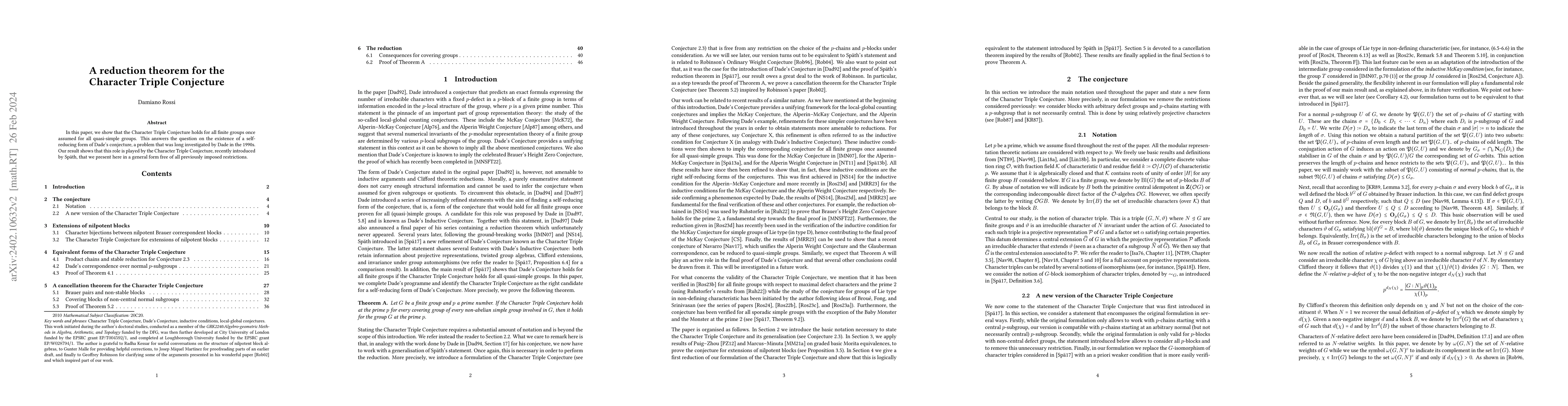 This paper demonstrates that the Character Triple Conjecture holds for all finite groups if it holds for all quasi-simple groups, thus providing a self-reducing form for Dade's conjecture and resolving a longstanding problem. The conjecture is presented in a general form without previous restrictions.