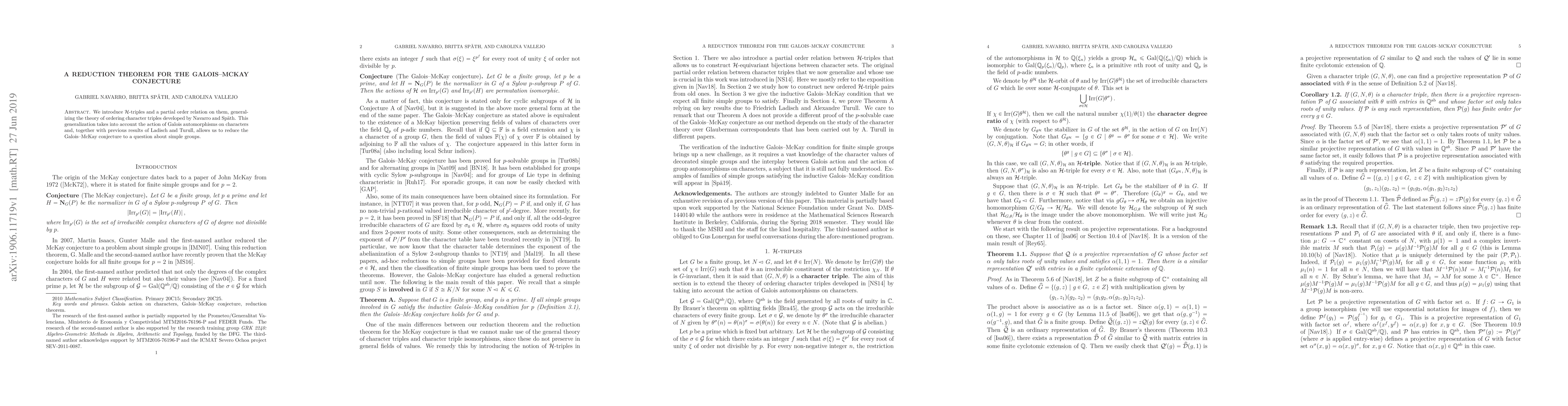 The paper introduces a new technique for ordering character triples that accounts for Galois automorphisms, enabling the reduction of the Galois-McKay conjecture.