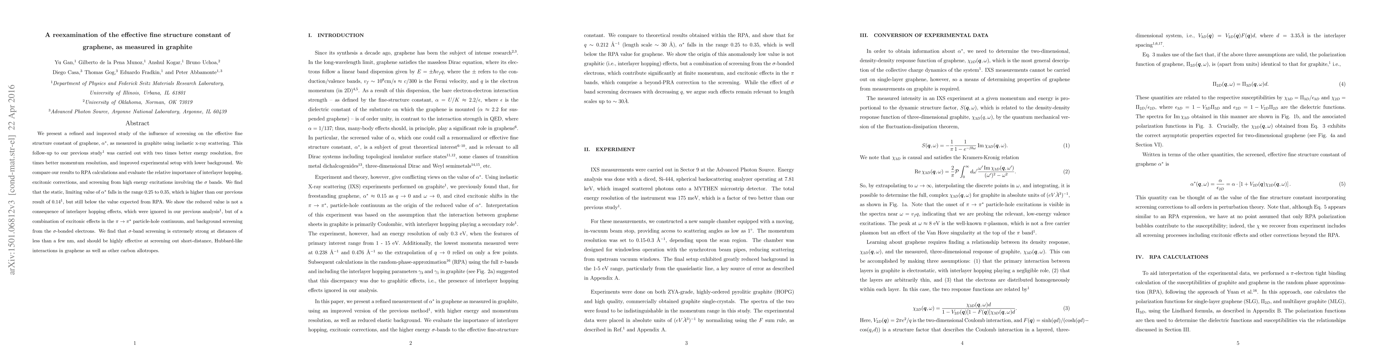 This study refines the measurement of graphene's effective fine structure constant, $\alpha^*$, using improved inelastic x-ray scattering techniques. The refined value of $\alpha^*$ is now found to be 0.25 to 0.35, higher than earlier results, due to significant excitonic and screening effects from $\sigma$-bonded electrons.