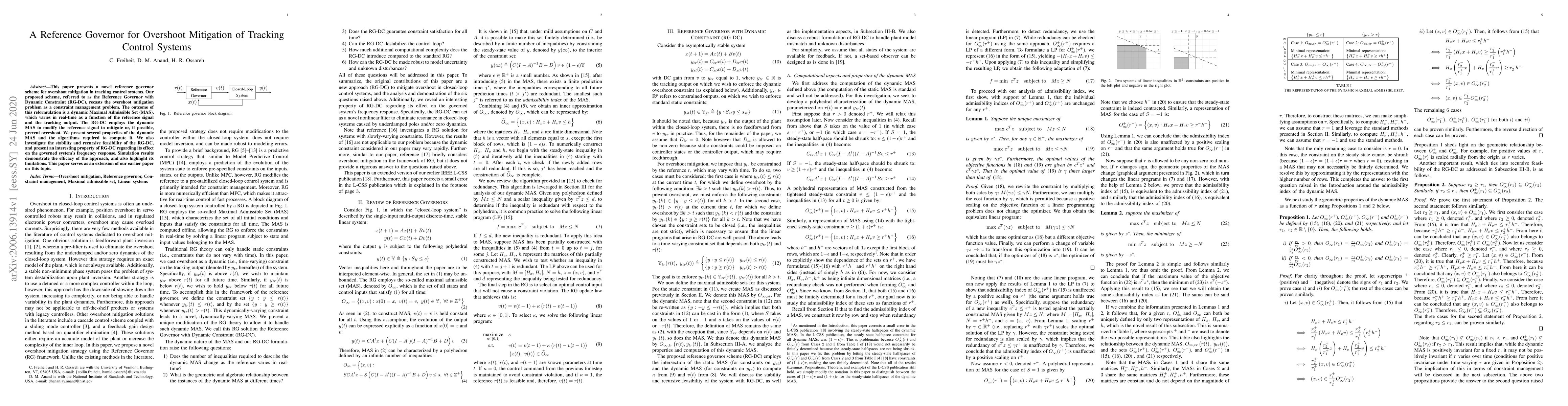This paper introduces a Reference Governor with Dynamic Constraint (RG-DC) to mitigate overshoot in tracking control systems by dynamically adjusting the reference signal based on a real-time Maximal Admissible Set (MAS). Simulation results show the effectiveness of the approach, though limitations are also noted.