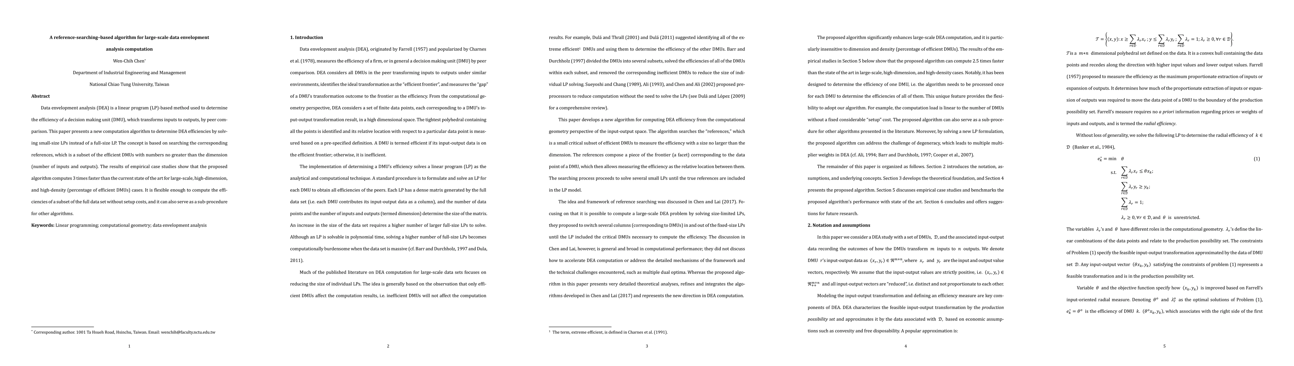 This paper introduces a novel reference-searching-based algorithm for large-scale data envelopment analysis (DEA) computation, solving small-size linear programs instead of a full-size one. Empirical studies show it is three times faster than current methods for high-dimension and high-density cases.