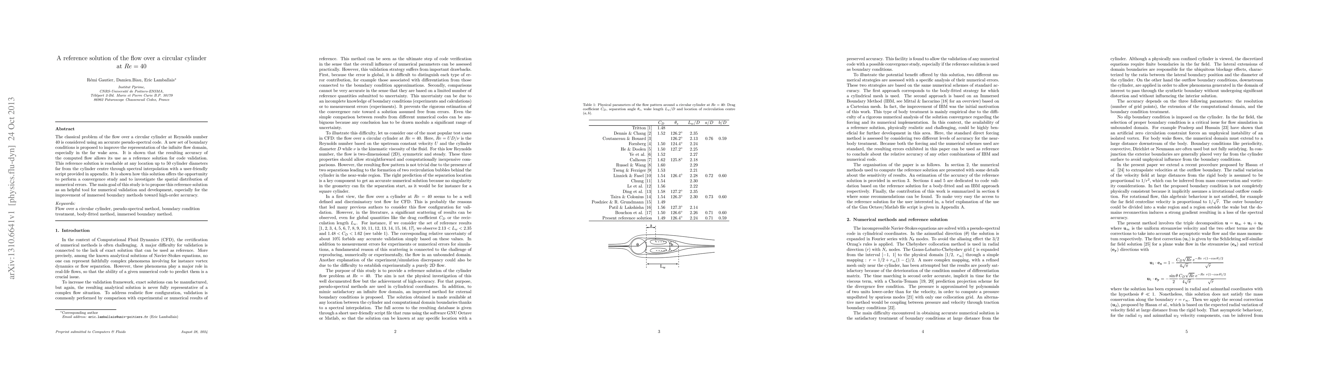 This paper presents an accurate reference solution for the flow over a circular cylinder at Re=40 using a pseudo-spectral code, proposing improved boundary conditions for the far wake. The solution, accessible up to 50 diameters away, aids in code validation and convergence studies, serving as a tool for numerical validation and development, particularly for high-order accuracy immersed boundary methods.