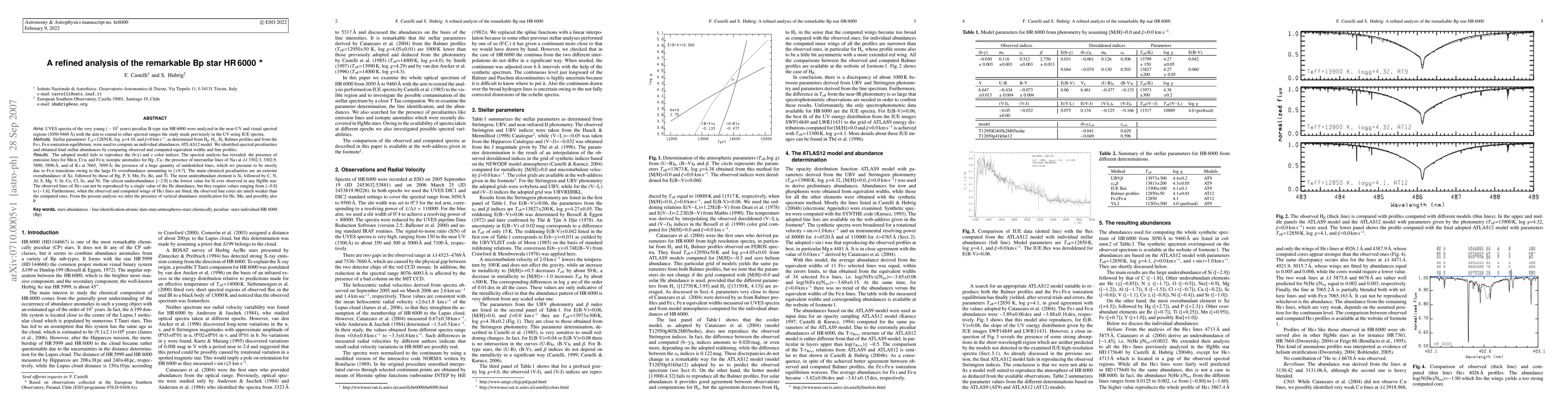 UVES spectra of the very young (~10^7 years) peculiar B-type star HR 6000 were analyzed in the near-UV and visual spectral regions (3050-9460 A) with the aim to extend to other spectral ranges the study made previously in the UV using IUE spectra. Stellar parameters Teff=12850K, logg=4.10, and xi=0km/s, as determined from H_beta, H_gamma, H_delta Balmer profiles and from the Fe I, Fe II ionization equilibrium, were used to compute an individual abundances ATLAS12 model. We identified spectral peculiarities and obtained final stellar abundances by comparing observed and computed equivalent widths and line profiles. The adopted model fails to reproduce the (b-y) and c color indices. The spectral analysis has revealed: the presence of emission lines for Mn II, Cr II, and Fe II; isotopic anomalies for Hg, Ca; the presence of interstellar lines of Na I at lambda lambda 3302.3, 3302.9, 5890, 5896 A, and of K I at 7665, 7699 A; the presence of a huge quantity of unidentified lines, which we presume to be mostly due to Fe II transitions owing to the large Fe overabundance amounting to [+0.7]. The main chemical peculiarities are an extreme overabundance of Xe, followed by those of Hg, P, Y, Mn, Fe, Be, and Ti. The most underabundant element is Si, followed by C, N, Al, S, Mg, V, Sr, Co, Cl, Sc, and Ni. The silicon underabundance [-2.9] is the lowest value for Si ever observed in any HgMn star. The observed lines of He I can not be reproduced by a single value of the He abundance, but they require values ranging from [-0.8] to [-1.6]. Furthermore, when the observed and computed wings of He I lines are fitted, the observed line cores are much weaker than the computed ones. From the present analysis we infer the presence of vertical abundance stratification for He, Mn, and possibly also P.