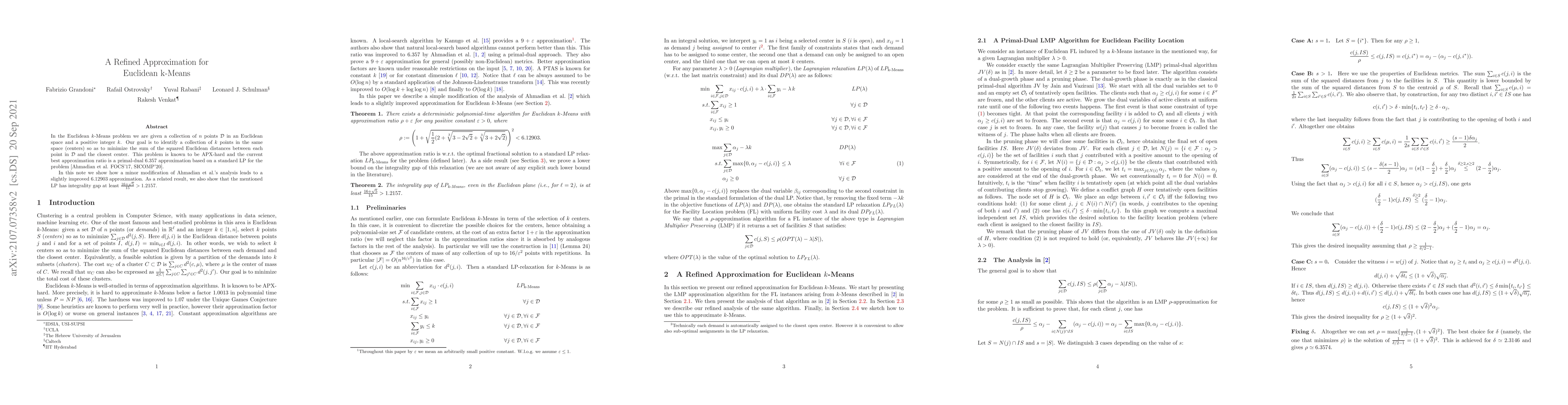 This paper presents a refined approximation algorithm for the Euclidean $k$-Means problem, achieving a slightly better $6.12903$ approximation ratio through a minor modification of existing analysis. Additionally, it demonstrates that the LP used in the previous best approximation has an integrality gap greater than $1.2157$.