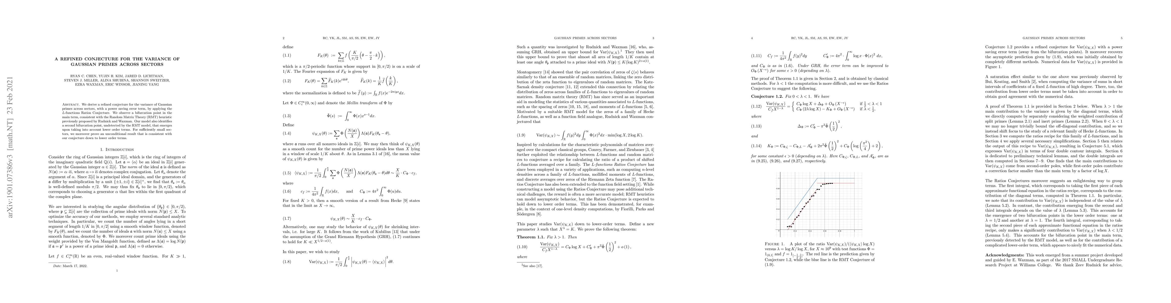 We derive a refined conjecture for the variance of Gaussian primes across sectors, with a power saving error term, by applying the L-functions Ratios Conjecture. We observe a bifurcation point in the main term, consistent with the Random Matrix Theory (RMT) heuristic previously proposed by Rudnick and Waxman. Our model also identifies a second bifurcation point, undetected by the RMT model, that emerges upon taking into account lower order terms. For sufficiently small sectors, we moreover prove an unconditional result that is consistent with our conjecture down to lower order terms.