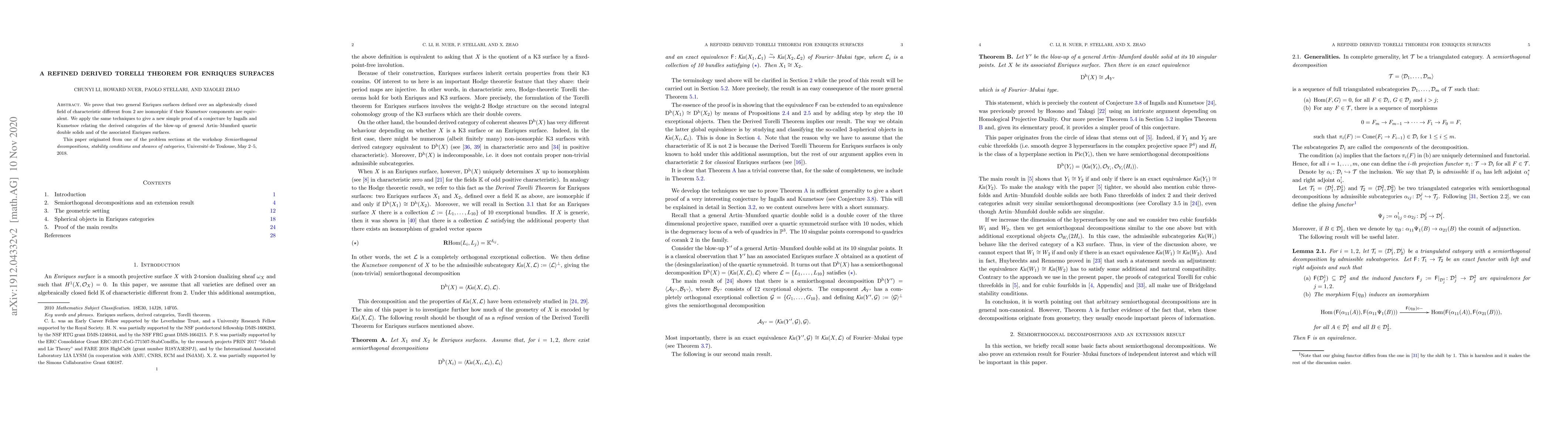 This paper establishes a refined Derived Torelli Theorem for Enriques surfaces, proving that two such surfaces are isomorphic if their Kuznetsov components are equivalent. Additionally, it provides a new proof for a conjecture linking the derived categories of Artin-Mumford quartic double solids and their associated Enriques surfaces.