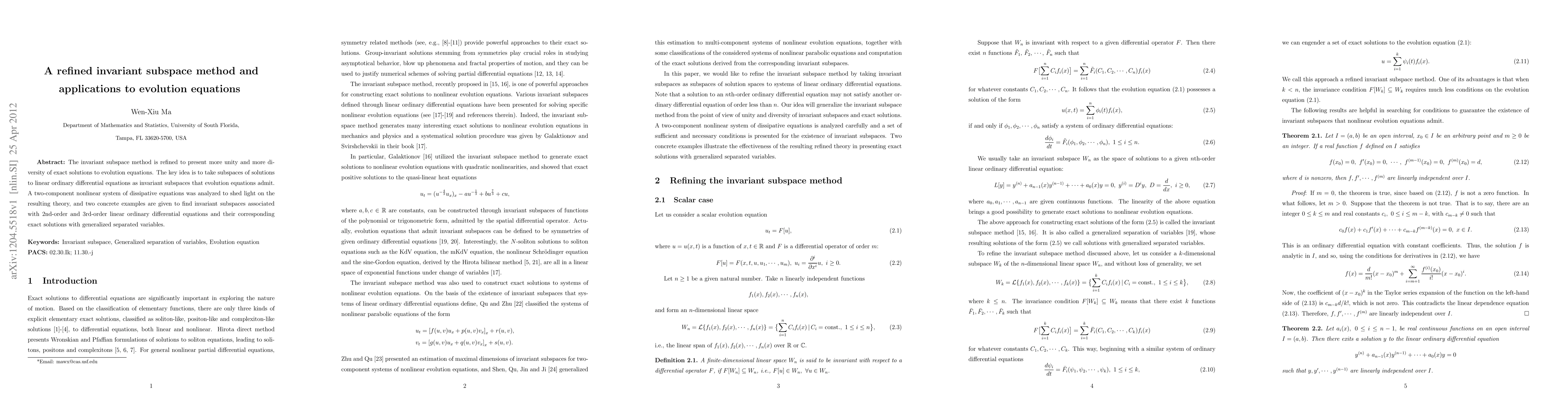 The invariant subspace method is refined to present more unity and more diversity of exact solutions to evolution equations. The key idea is to take subspaces of solutions to linear ordinary differential equations as invariant subspaces that evolution equations admit. A two-component nonlinear system of dissipative equations was analyzed to shed light on the resulting theory, and two concrete examples are given to find invariant subspaces associated with 2nd-order and 3rd-order linear ordinary differential equations and their corresponding exact solutions with generalized separated variables.