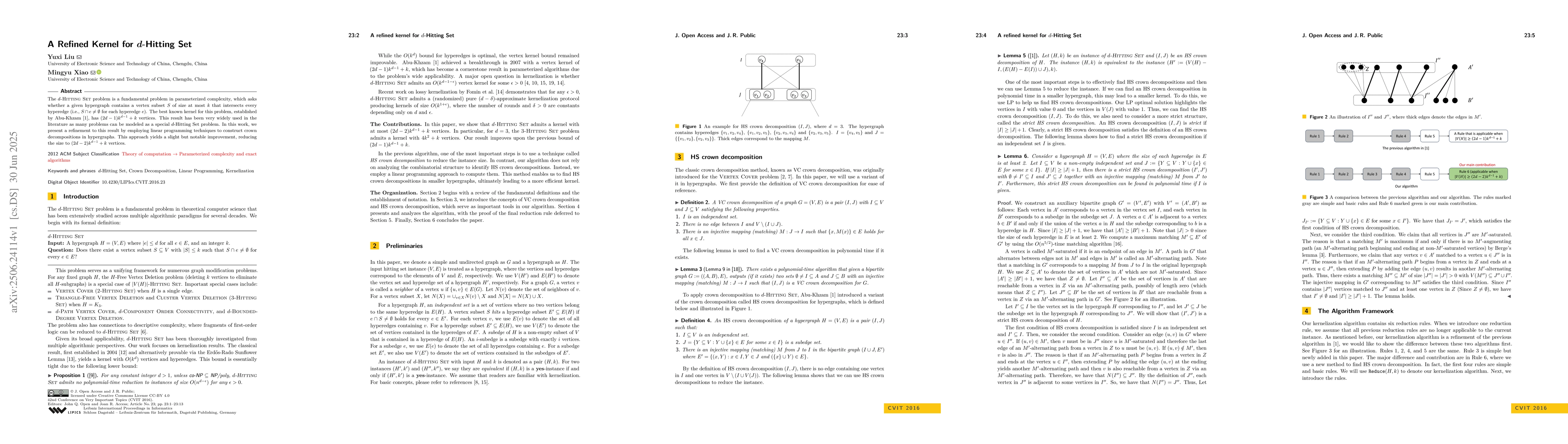 Saket Saurabh, Jie Xue, Daniel Lokshtanov et al.