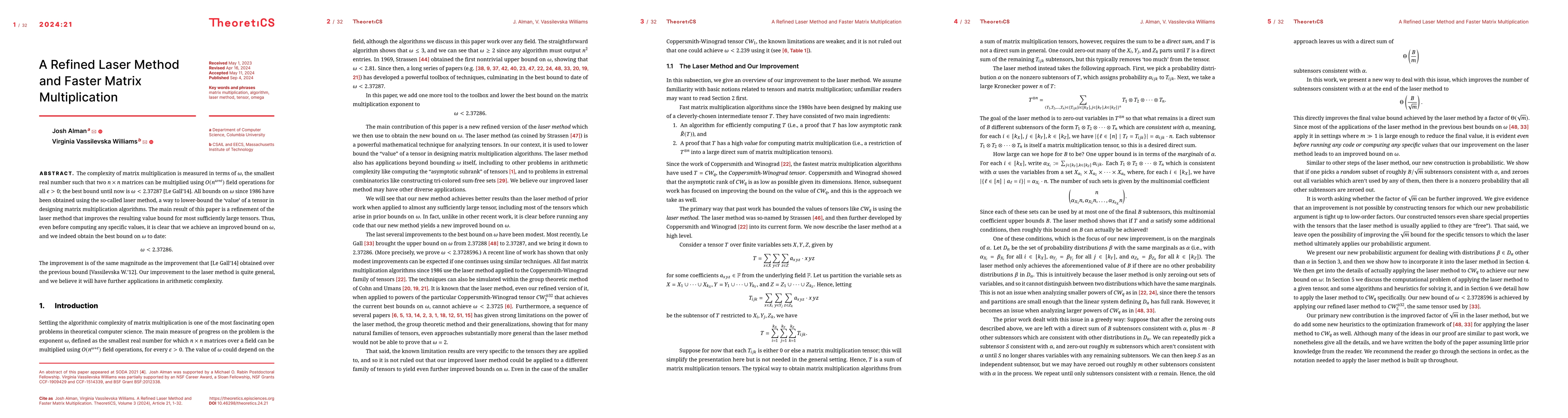 Josh Alman, Virginia Vassilevska Williams, Renfei Zhou et al.