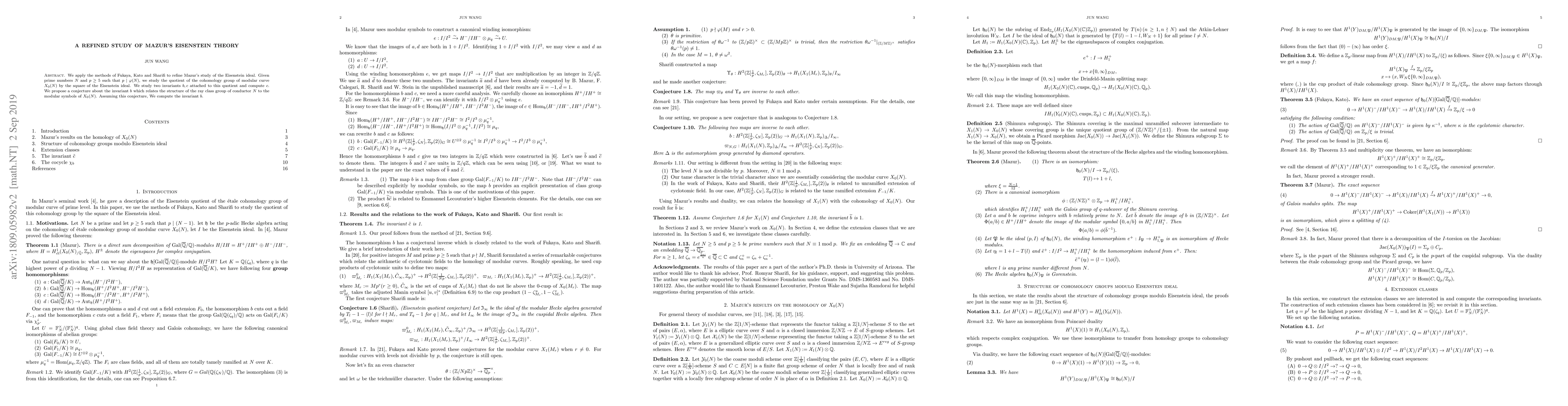 This paper refines Mazur's Eisenstein theory by employing modern methods to study the quotient of the cohomology group of modular curve $X_{0}(N)$ by the square of the Eisenstein ideal, computing invariant $c$ and proposing a conjecture about invariant $b$ that connects the ray class group of conductor $N$ to modular symbols.