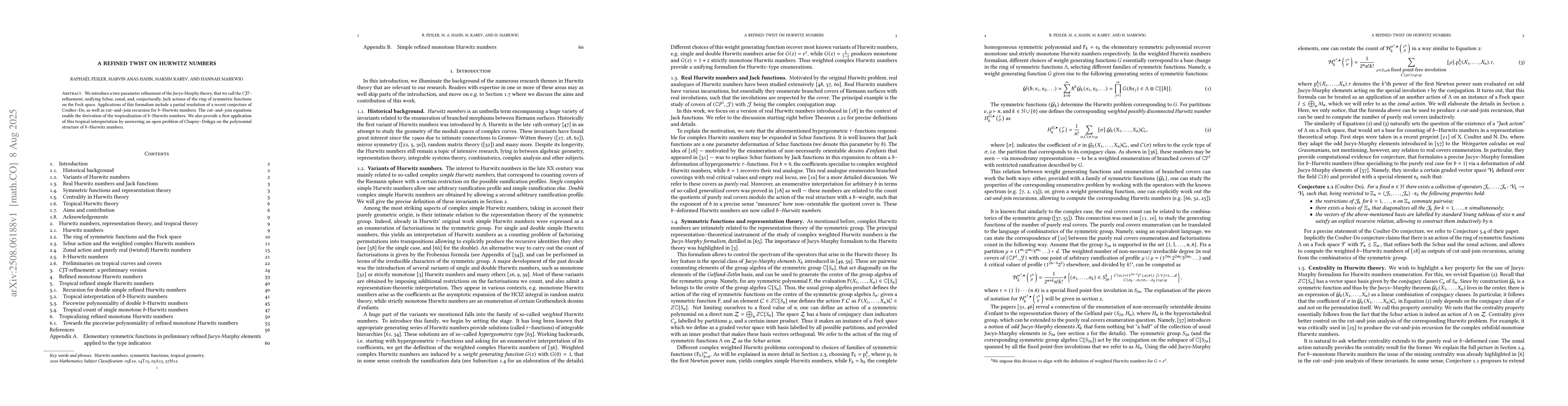 We introduce a two-parameter refinement of the Jucys-Murphy theory, that we call the CJT-refinement, unifying Schur, zonal, and, conjecturally, Jack actions of the ring of symmetric functions on the Fock space. Applications of this formalism include a partial resolution of a recent conjecture of Coulter-Do, as well as cut-and-join recursion for $b$-Hurwitz numbers. The cut-and-join equations enable the derivation of the tropicalization of $b$--Hurwitz numbers. We also provide a first application of this tropical interpretation by answering an open problem of Chapuy-Do{\l}\k{e}ga on the polynomial structure of $b$-Hurwitz numbers.