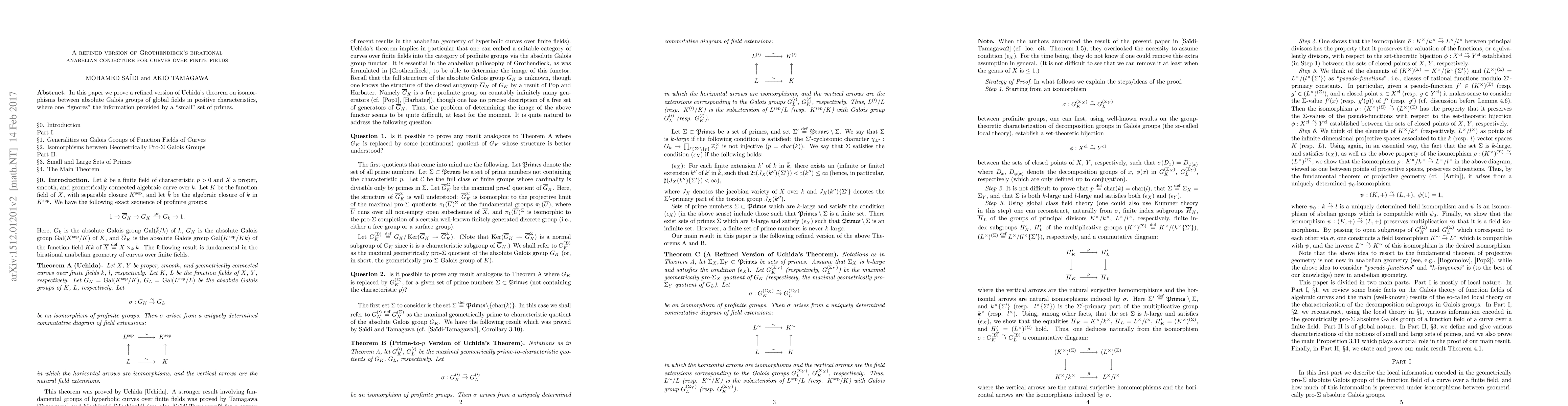 Researchers prove a refined version of Grothendieck's birational anabelian conjecture for curves over finite fields, building on Uchida's theorem to better understand the relationship between absolute Galois groups in positive characteristics.