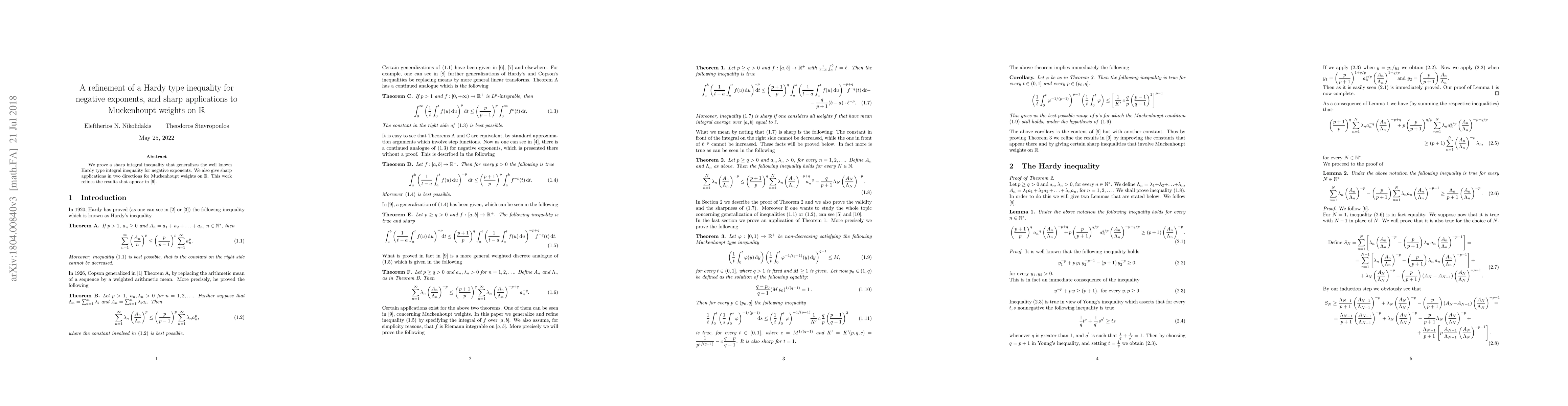 We prove a sharp integral inequality that generalizes the well known Hardy type integral inequality for negative exponents. We also give sharp applications in two directions for Muckenhoupt weights on R. This work refines the results that appear in [9].