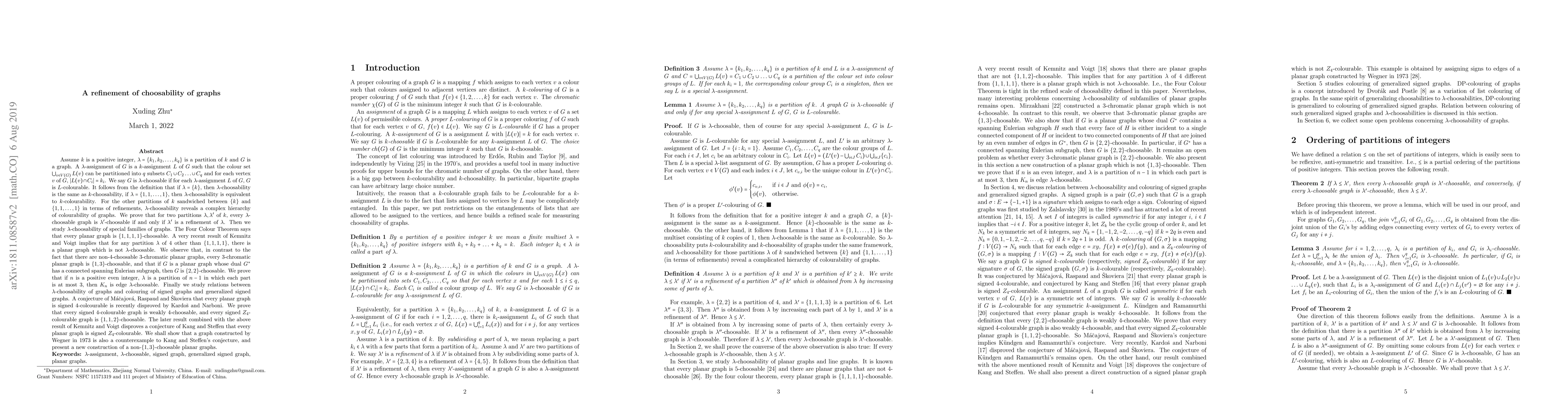 This paper refines the concept of graph choosability for partitions of an integer $k$, demonstrating that $\lambda$-choosability reveals a complex hierarchy of graph colourability. It proves that a graph is $\lambda'$-choosable if $\lambda'$ is a refinement of $\lambda$, and explores these concepts particularly for planar graphs with $k=4$, linking several conjectures on their list colouring properties.