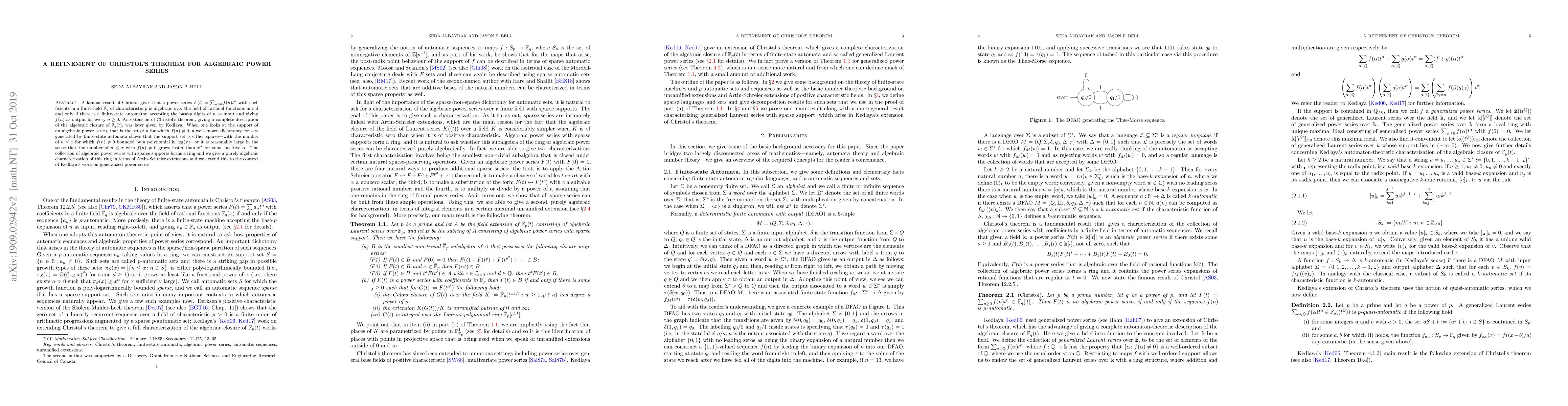 This paper refines Christol's theorem on algebraic power series by characterizing the ring of algebraic power series with sparse supports using Artin-Schreier extensions and extends this result within Kedlaya's framework for generalized power series.