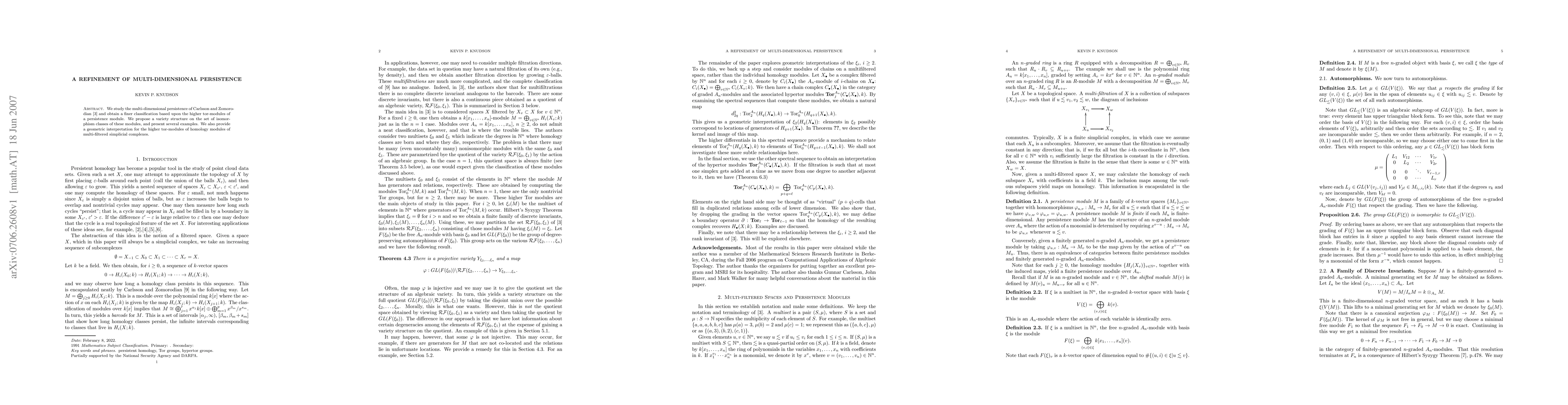 We study the multi-dimensional persistence of Carlsson and Zomorodian and obtain a finer classification based upon the higher tor-modules of a persistence module. We propose a variety structure on the set of isomorphism classes of these modules, and present several examples. We also provide a geometric interpretation for the higher tor-modules of homology modules of multi-filtered simplicial complexes.