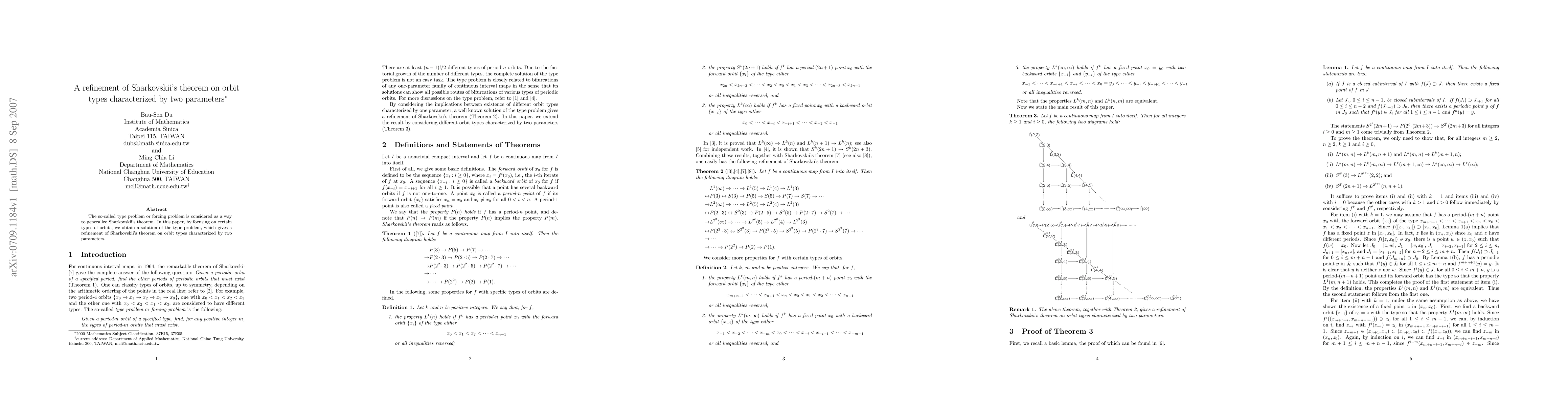 Researchers refine Sharkovskii's theorem on orbit types by solving a 'type problem', providing new insights into the relationship between two parameters and orbit behavior.