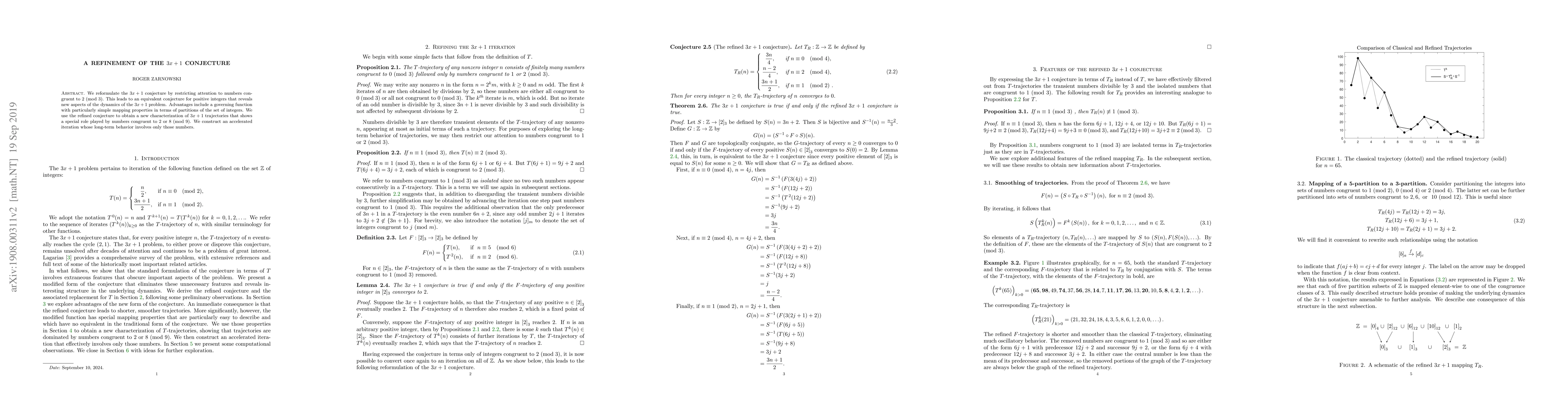 We reformulate the $3x+1$ conjecture by restricting attention to numbers congruent to $2$ (mod $3$). This leads to an equivalent conjecture for positive integers that reveals new aspects of the dynamics of the $3x+1$ problem. Advantages include a governing function with particularly simple mapping properties in terms of partitions of the set of integers. We use the refined conjecture to obtain a new characterization of $3x+1$ trajectories that shows a special role played by numbers congruent to $2$ or $8$ (mod $9$). We construct an accelerated iteration whose long-term behavior involves only those numbers.