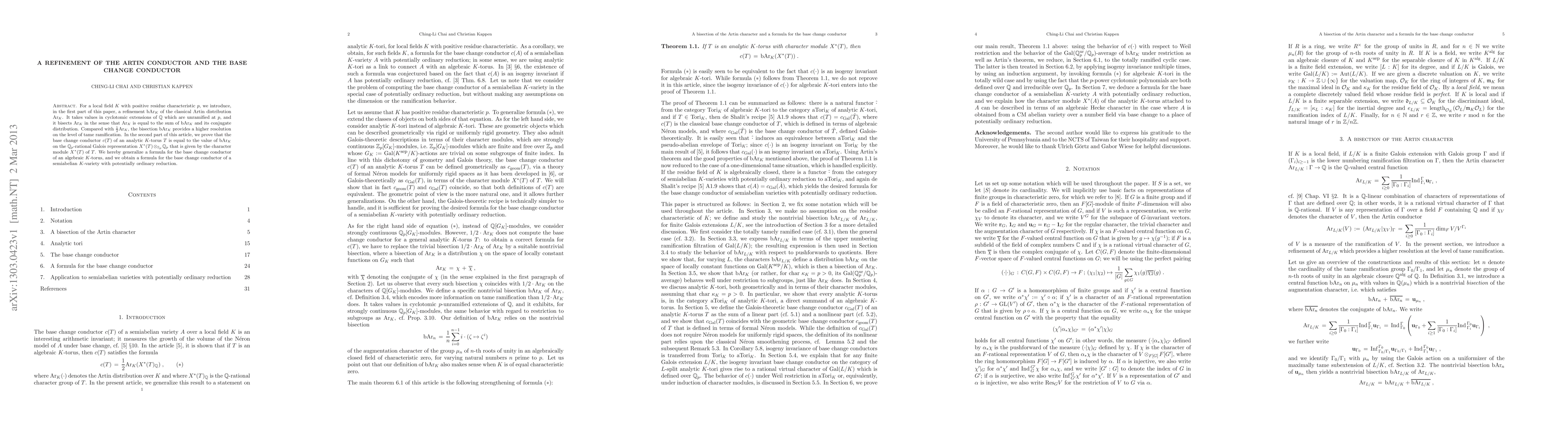 This paper refines the classical Artin distribution for local fields of positive residue characteristic, introducing a higher resolution bisection bAr_K. It also proves that the base change conductor c(T) of an analytic K-torus T equals the value of bAr_K on the Q_p-rational Galois representation, generalizing existing formulas.