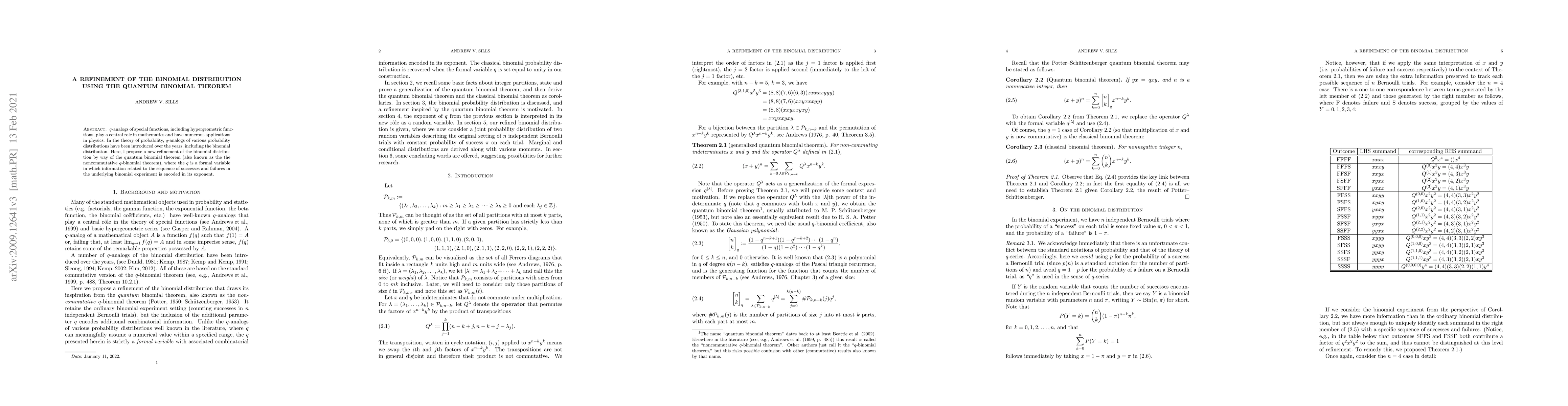 $q$-analogs of special functions, including hypergeometric functions, play a central role in mathematics and have numerous applications in physics. In the theory of probability, $q$-analogs of various probability distributions have been introduced over the years, including the binomial distribution. Here, I propose a new refinement of the binomial distribution by way of the quantum binomial theorem (also known as the the noncommutative $q$-binomial theorem), where the $q$ is a formal variable in which information related to the sequence of successes and failures in the underlying binomial experiment is encoded in its exponent.