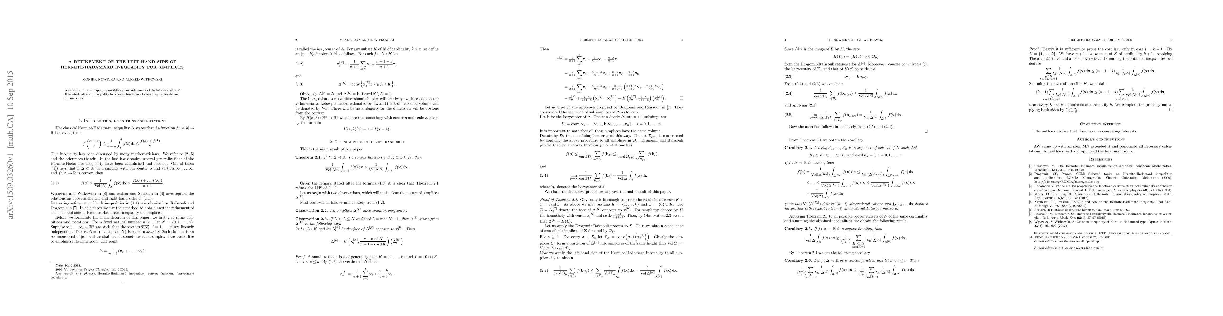 Summary: This paper presents a refined version of the left-hand side of the Hermite-Hadamard inequality for convex functions of multiple variables defined on simplices, enhancing the understanding of these functions' properties.