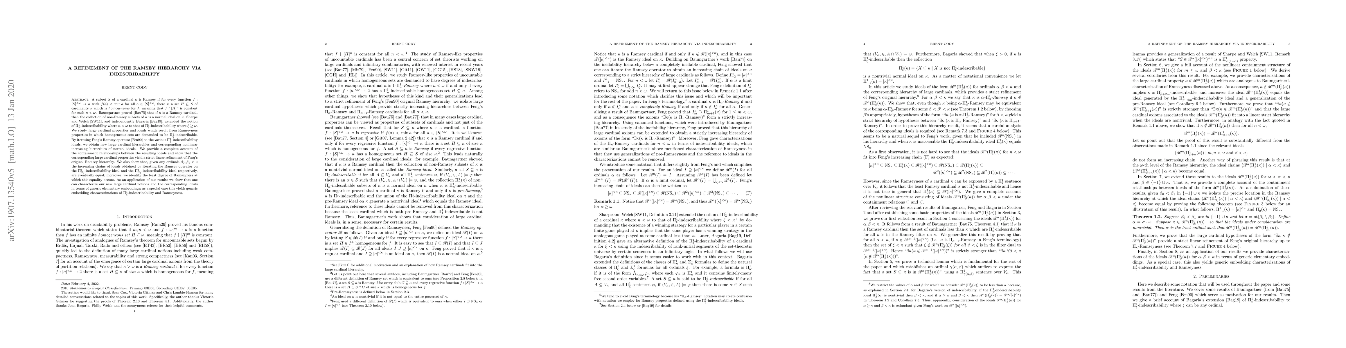 This paper refines the Ramsey hierarchy by introducing new large cardinal notions that require homogeneous sets to be Π^1_ u-indescribable, leading to a strict linear refinement of Feng's original hierarchy.