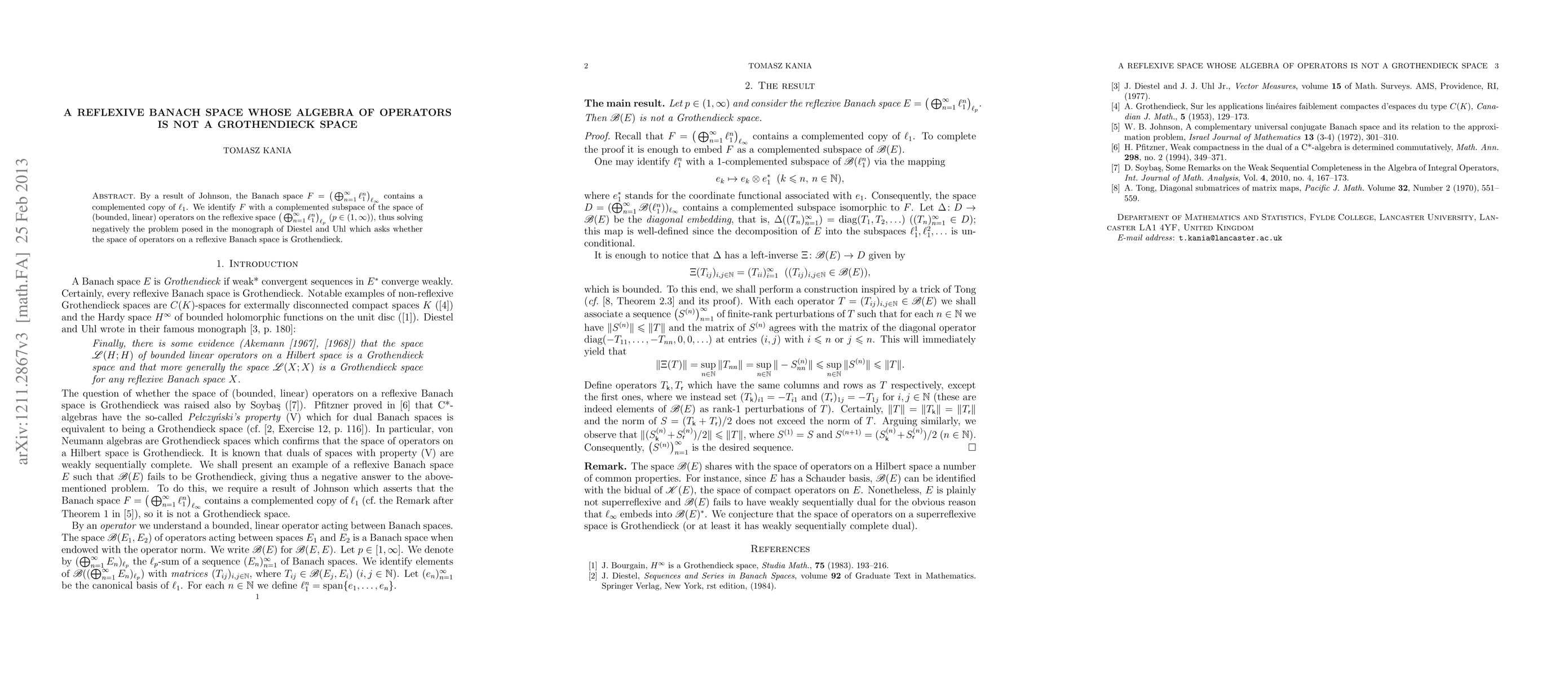 This research paper shows that a specific Banach space $F$ contains an infinite-dimensional subspace whose algebra of operators is not a Grothendieck space, contradicting a problem posed in a monograph on the subject.