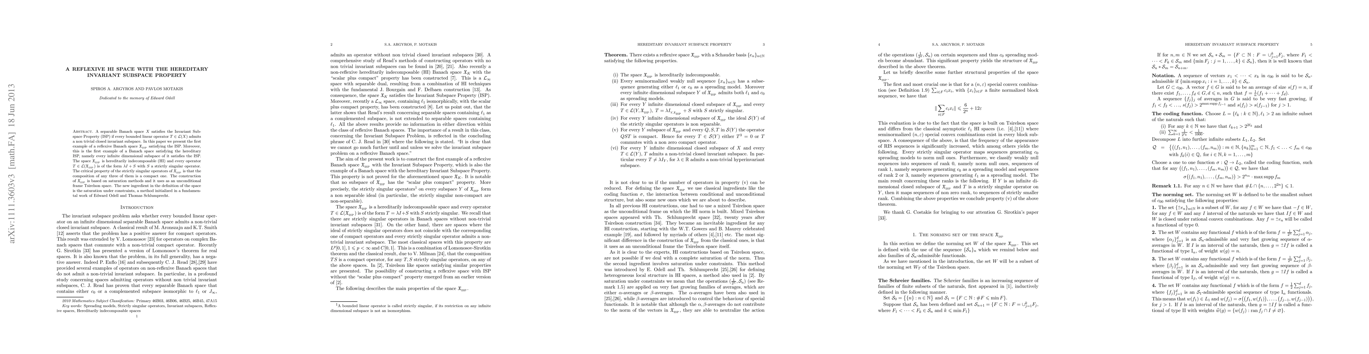 A reflexive hereditarily indecomposable Banach space $\mathfrak{X}_{_{^\text{ISP}}}$ is presented, such that for every $Y$ infinite dimensional closed subspace of $\mathfrak{X}_{_{^\text{ISP}}}$ and every bounded linear operator $T:Y\rightarrow Y$, the operator $T$ admits a non-trivial closed invariant subspace.