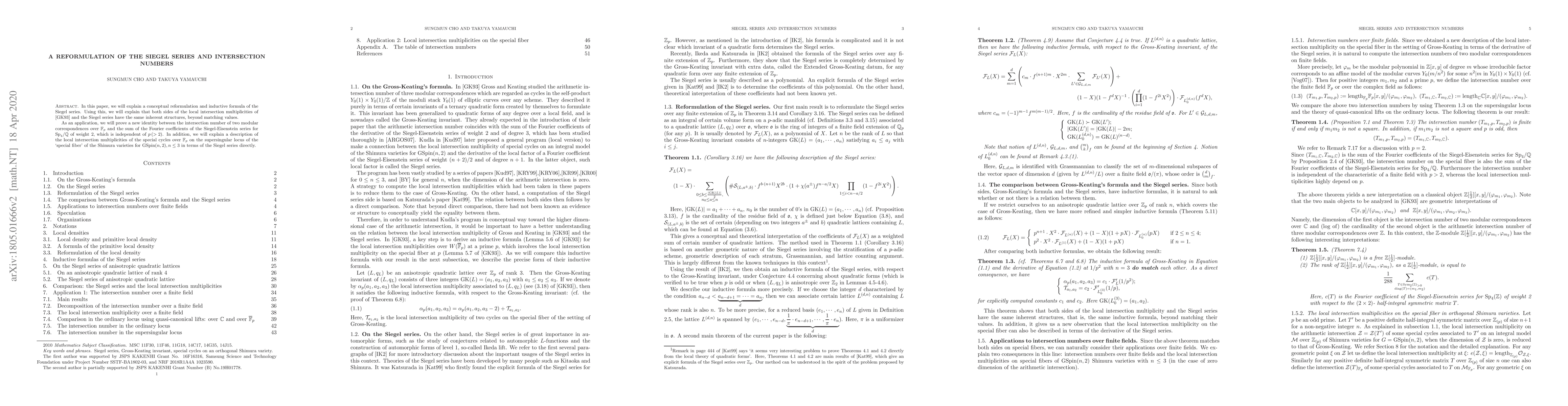 This paper reformulates the Siegel series and provides an inductive formula, revealing that the local intersection multiplicities and the Siegel series share inherent structural similarities. It also proves a new identity relating modular correspondences' intersection numbers to the Fourier coefficients of the Siegel-Eisenstein series for Sp_4 of weight 2, independent of the prime p.
