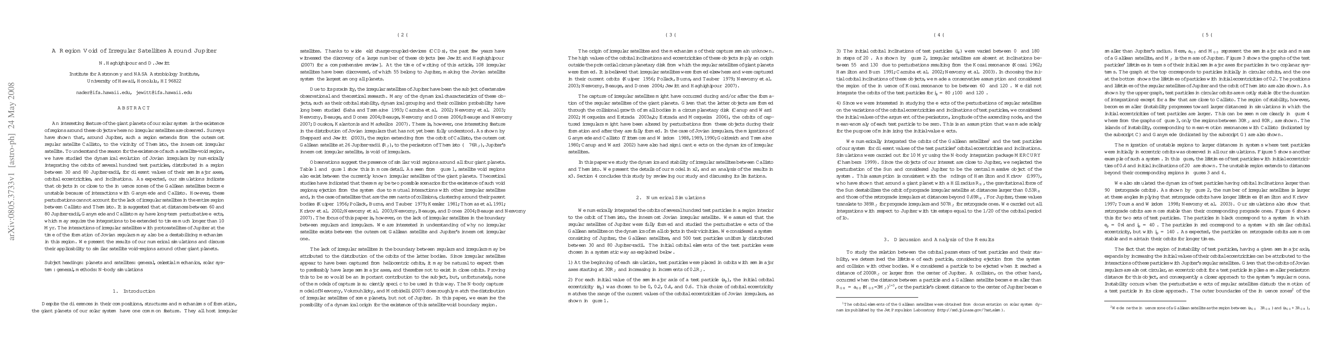This paper investigates the absence of irregular satellites in the region between Jupiter's outermost regular satellite, Callisto, and the innermost irregular satellite, Themisto. Numerical simulations suggest that while interactions with the Galilean satellites destabilize objects in their vicinity, other long-term perturbations and early-stage interactions during Jupiter's formation may explain the broader satellite void.