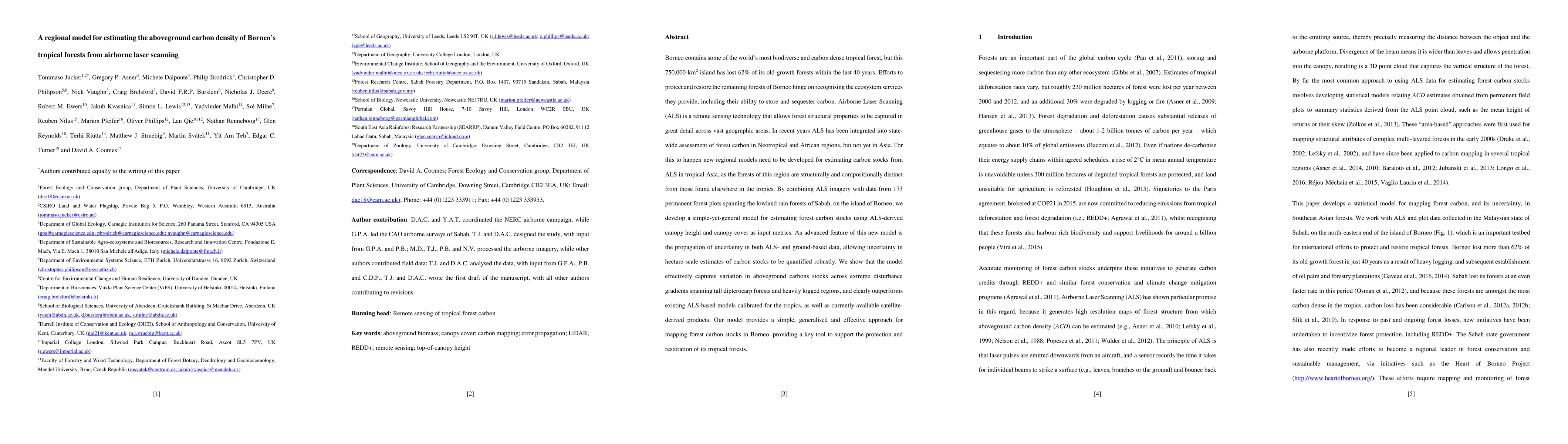 This paper develops a regional model using Airborne Laser Scanning (ALS) to estimate aboveground carbon density in Borneo's tropical forests, integrating ALS data with ground-based forest plots. The model effectively captures carbon variation across different forest disturbances and outperforms existing models, offering a robust tool for forest carbon mapping and conservation efforts.