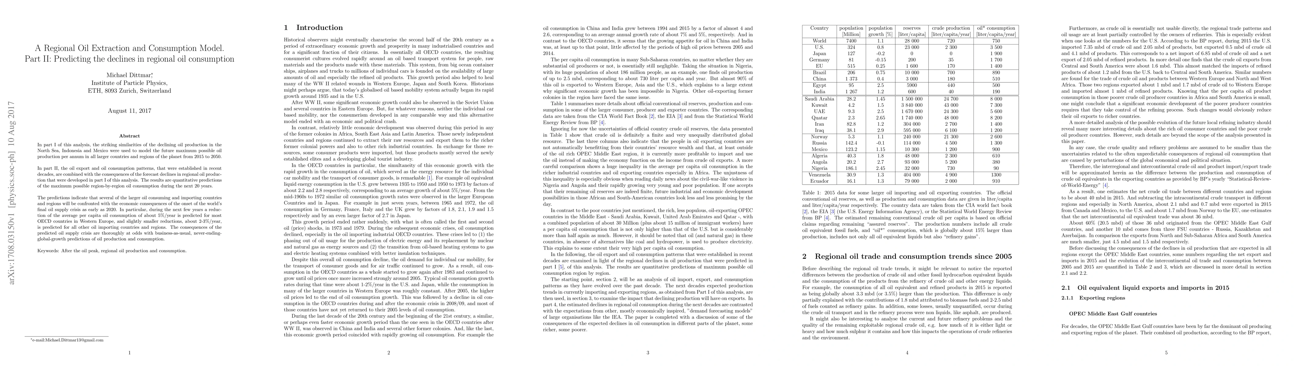 Part II of this study predicts significant declines in regional oil consumption from 2020 onward due to forecasted drops in oil production, contradicting perpetual growth assumptions in oil markets. Anticipated reductions range from 5%/year in Western Europe to 2-3%/year globally.