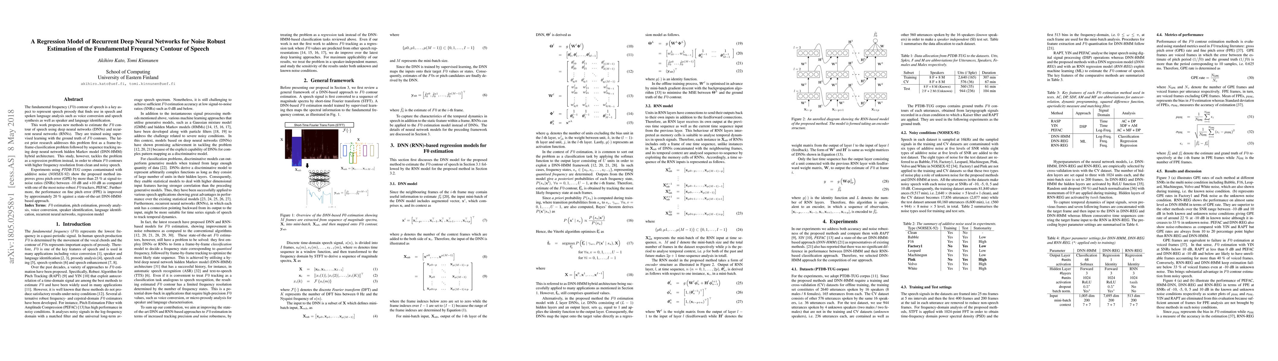 This research paper proposes a new method to estimate the fundamental frequency contour of speech using recurrent deep neural networks, achieving significant improvements in noise robustness and pitch error reduction compared to existing methods.