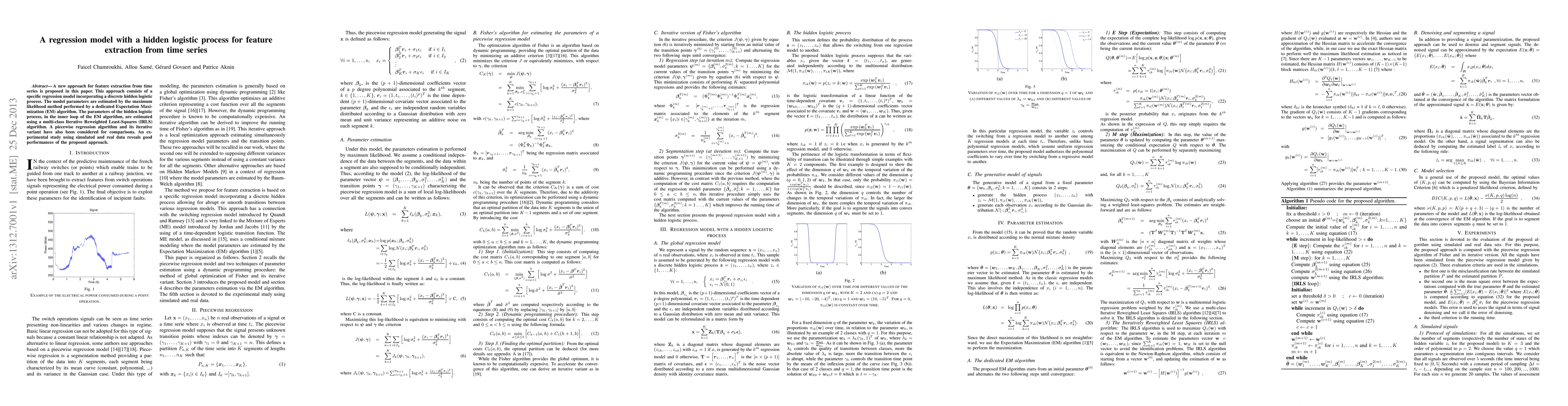This paper introduces a regression model with a hidden logistic process for time series feature extraction, estimating parameters via an Expectation Maximization algorithm and multi-class Iterative Reweighted Least-Squares. Experimental results show its effectiveness compared to piecewise regression methods.