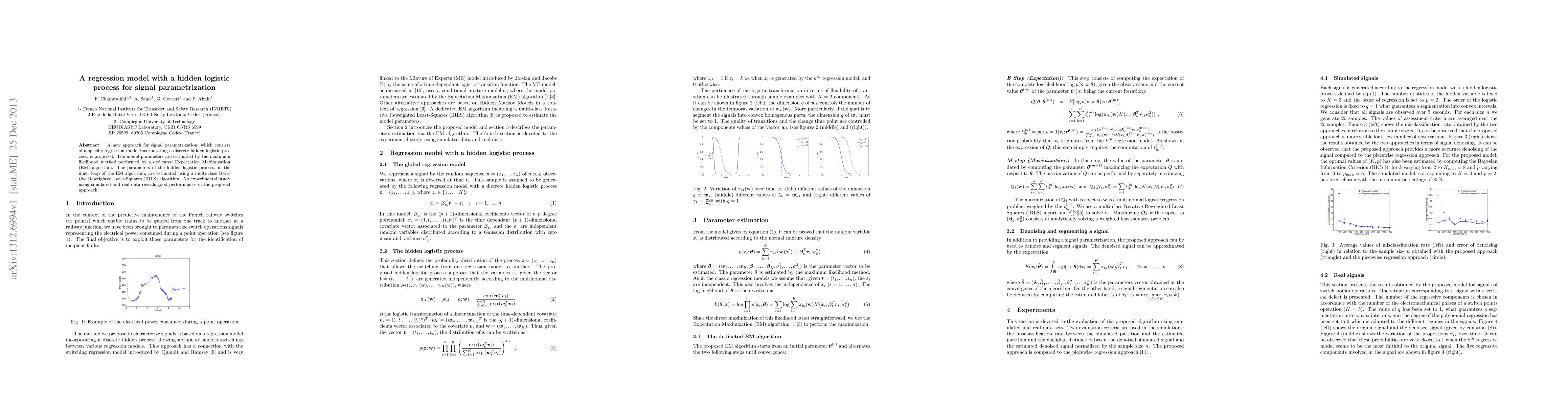 This paper proposes a novel regression model for signal parametrization that integrates a hidden logistic process, estimating parameters via a Maximum Likelihood method using an Expectation Maximization algorithm with an inner loop employing a multi-class Iterative Reweighted Least-Squares algorithm. Experimental results show the model's effectiveness on both simulated and real data.