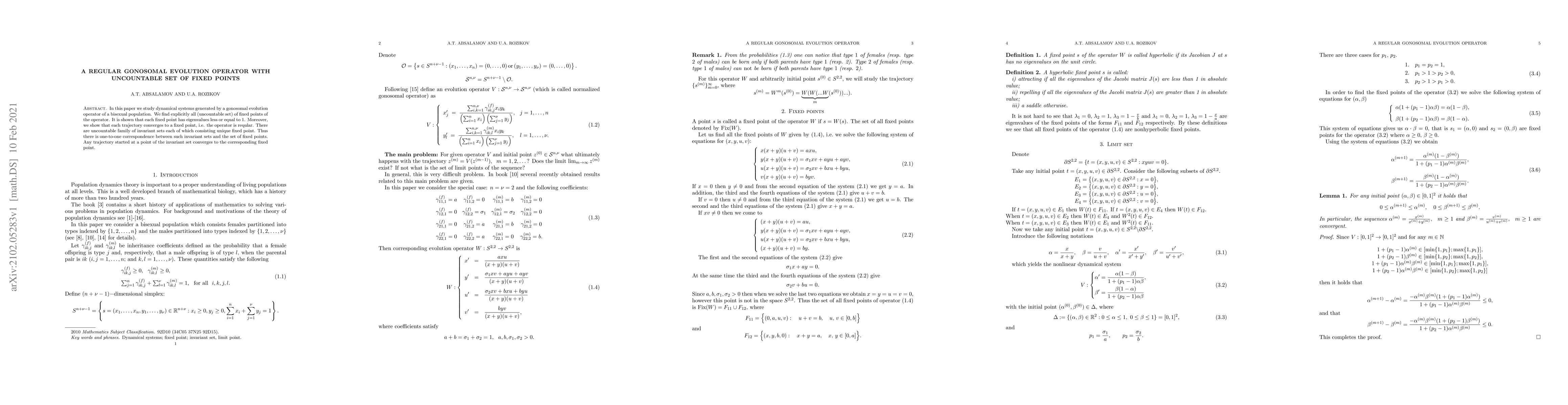 This paper examines dynamical systems from a gonosomal evolution operator in a bisexual population, identifying an uncountable set of fixed points. Each fixed point has eigenvalues ≤ 1, and all trajectories converge to these fixed points, confirming the operator's regularity.
