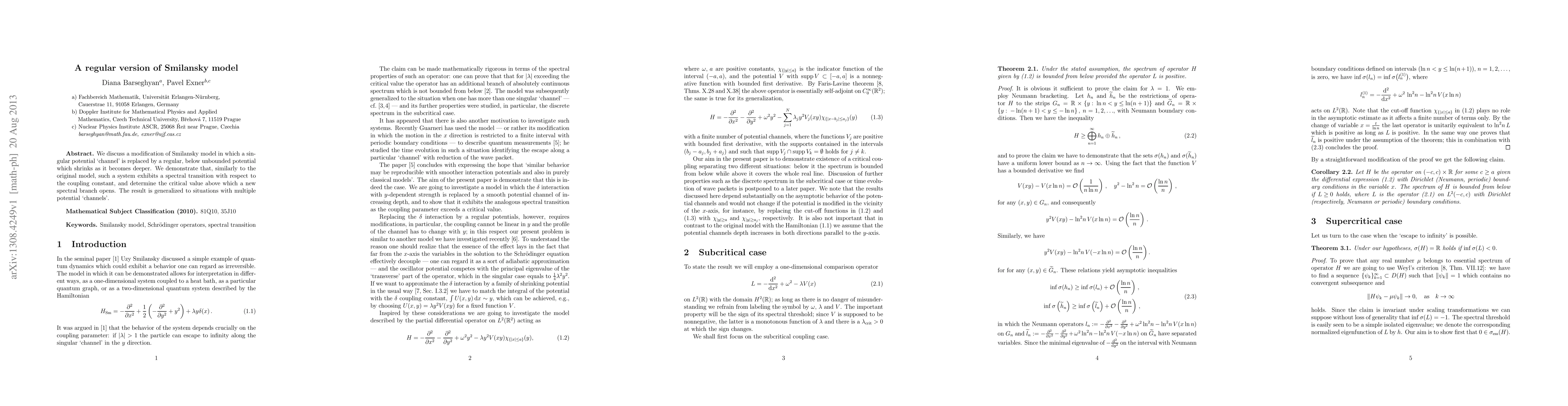 We discuss a modification of Smilansky model in which a singular potential `channel' is replaced by a regular, below unbounded potential which shrinks as it becomes deeper. We demonstrate that, similarly to the original model, such a system exhibits a spectral transition with respect to the coupling constant, and determine the critical value above which a new spectral branch opens. The result is generalized to situations with multiple potential `channels'.
