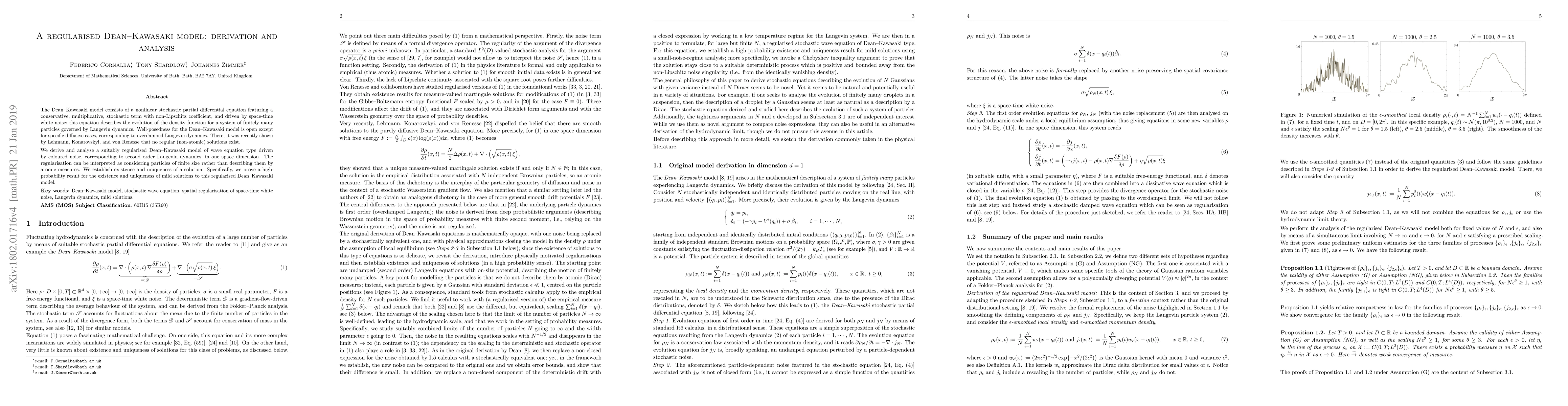 This paper develops a regularised version of the Dean-Kawasaki model, a nonlinear stochastic PDE driven by coloured noise, to address the lack of regular solutions in the original model. It establishes the existence and uniqueness of mild solutions, proving a high-probability result for the regularised model in one space dimension.