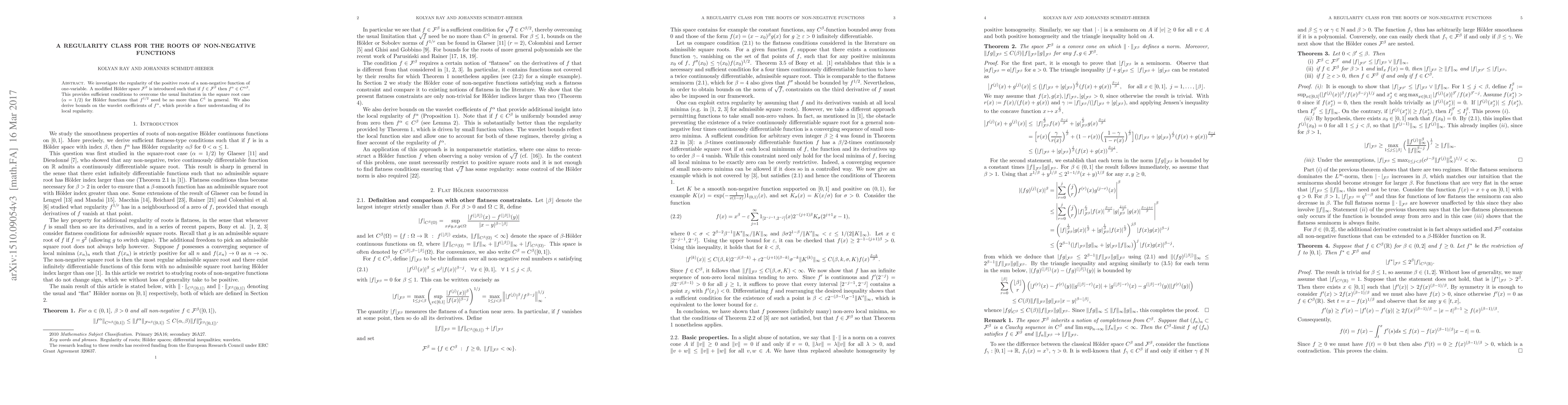 A new regularity class for non-negative functions is introduced to analyze the positive roots of such functions, providing conditions for overcoming limitations in H"older spaces.